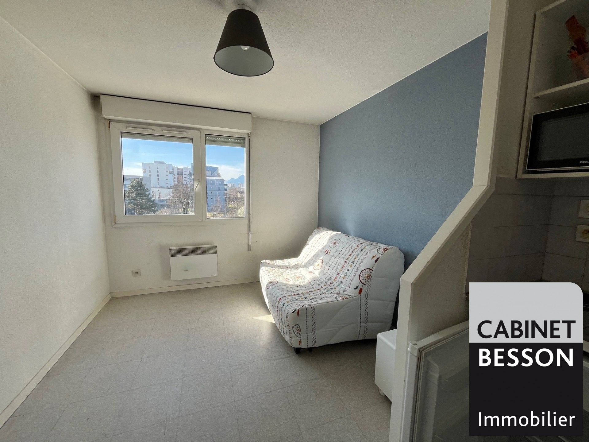 GRENOBLE - 6 rue Edgar Quinet - Proche gare, Europole, commerces, 5min du centre ville - Location d'un studio de 24.85m² au 1er étage, une pièce de vie avec kitchenette équipée, une mezzanine. Disponible de suite. Loyer 392 ? par mois charges comprises do...