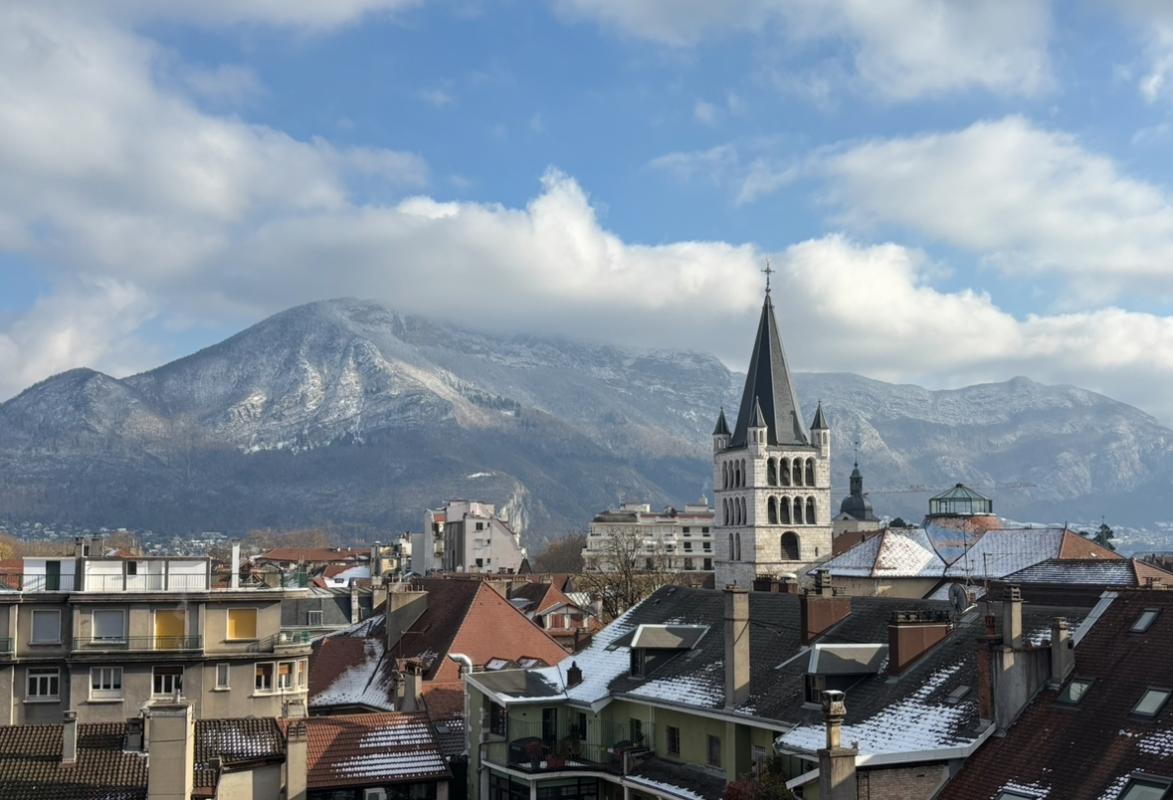 A LOUER, 2 P+C traversant de 51.6 m² à ANNECY en 6ème étage d'un immeuble bourgeois situé en plein centre ville. Il bénéficie d'une vue dégagée et panoramique sur la ville et les montagnes, avec la chambre côté cour intérieure au calme. Une cave et u...