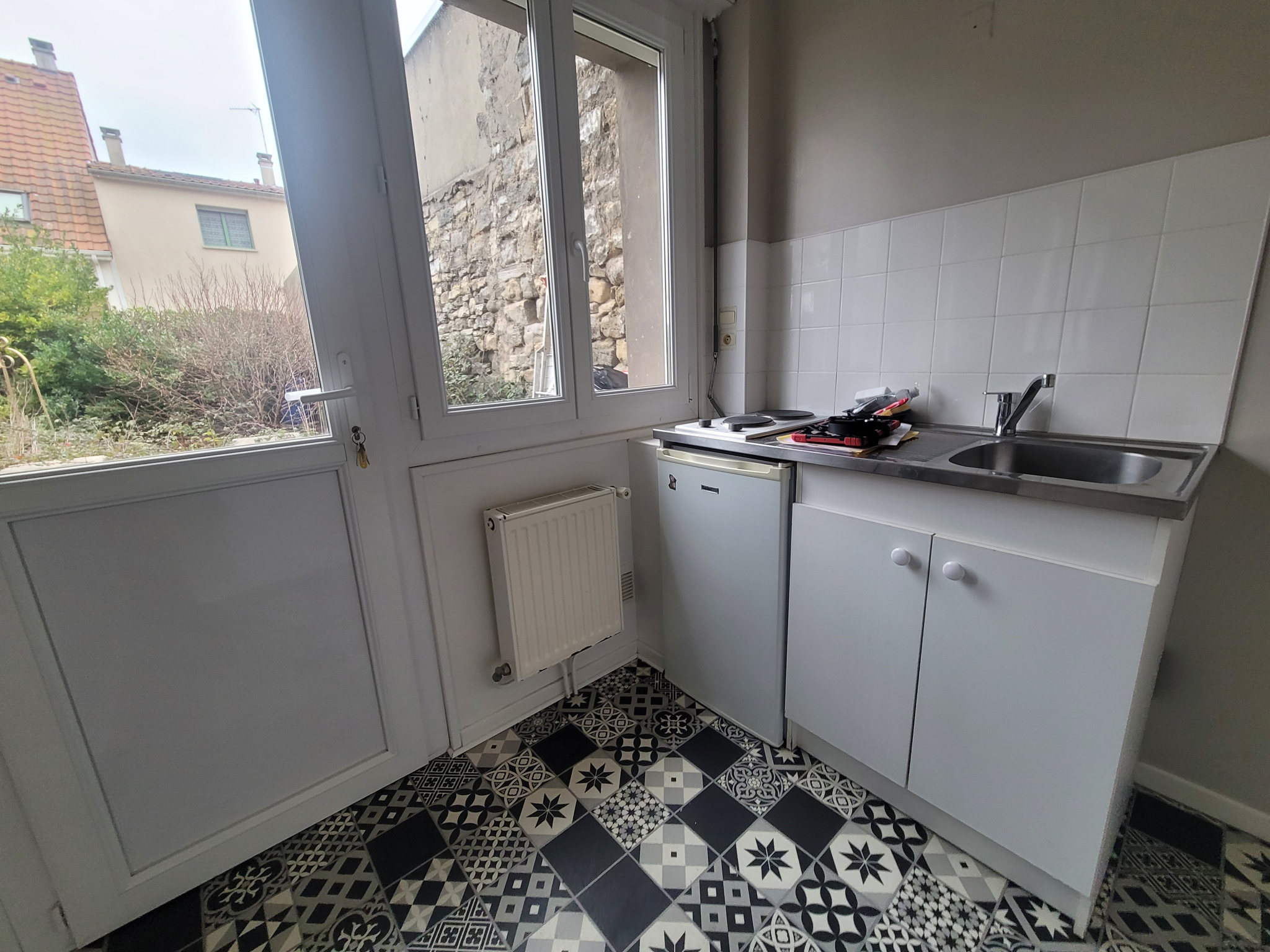 Nous vous proposons ce studio récemment rénové de 17m² (loi Carrez) au 3ème et dernier étage d'un immeuble calme et sécurisé. <BR><BR>Situé au pied du métro Alsace et de l'accès voie rapide. <BR><BR>Il comprend un hall d...