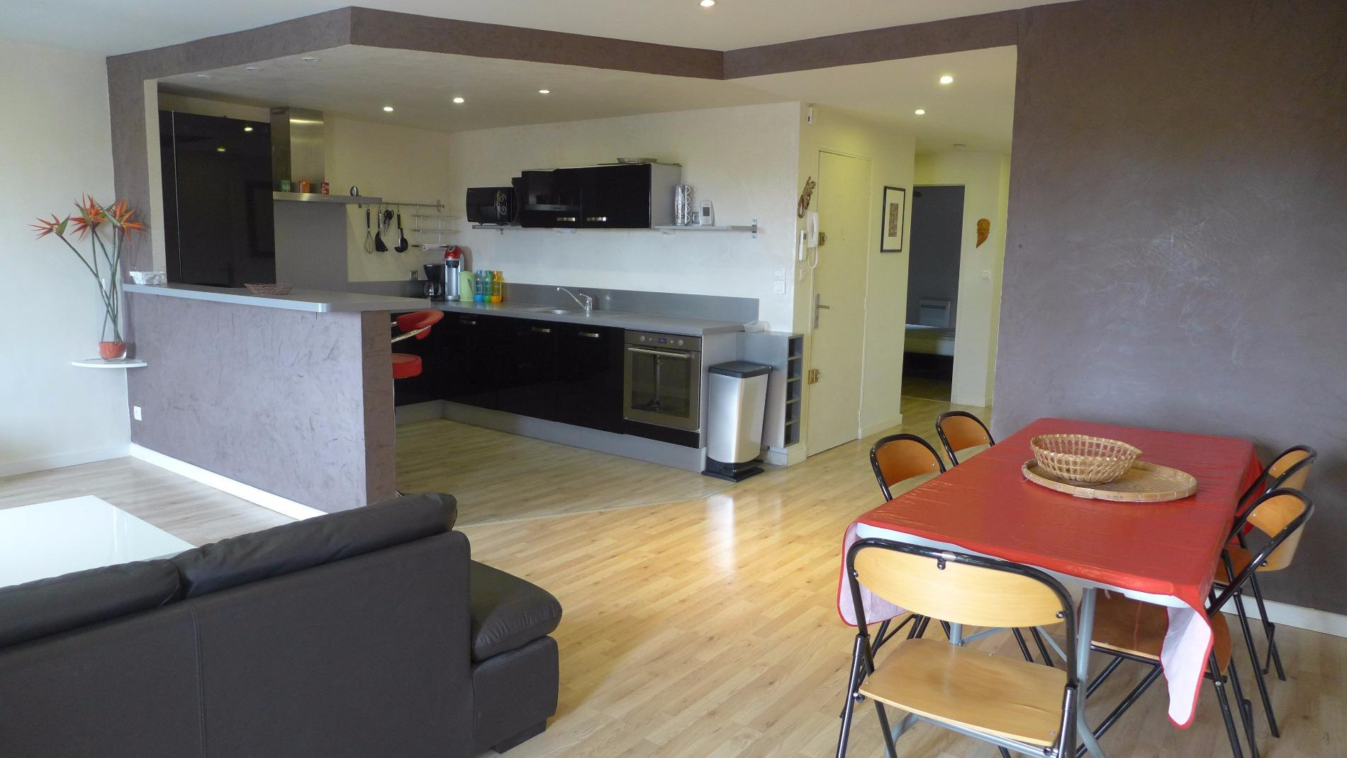 Appartement MEUBLE de type 3 de 74.05 m2, situé au 3ème et dernier étage (SANS ASCENSEUR), comprenant : entrée, séjour, cuisine américaine entièrement équipée, chambre avec un lit BZ 140 x 190 et rangements, c...
