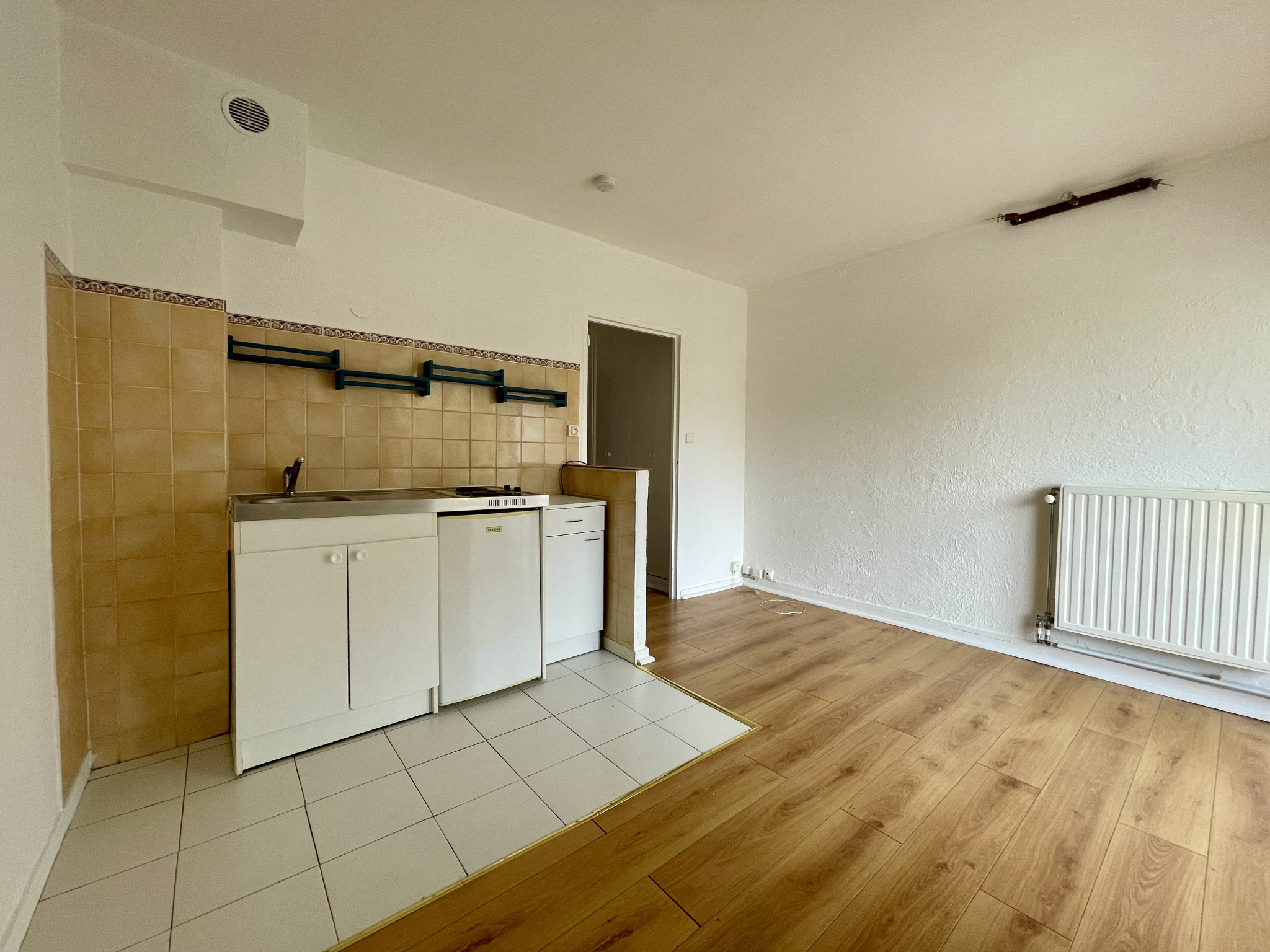 Appartement traversant de type 1 de 29.86 m2 au 2ème étage SANS ASCENSEUR comprenant : entrée avec placard aménagé, séjour, salle d'eau avec wc, cuisine séparée et semi-équipée (hotte électrique + plaque...