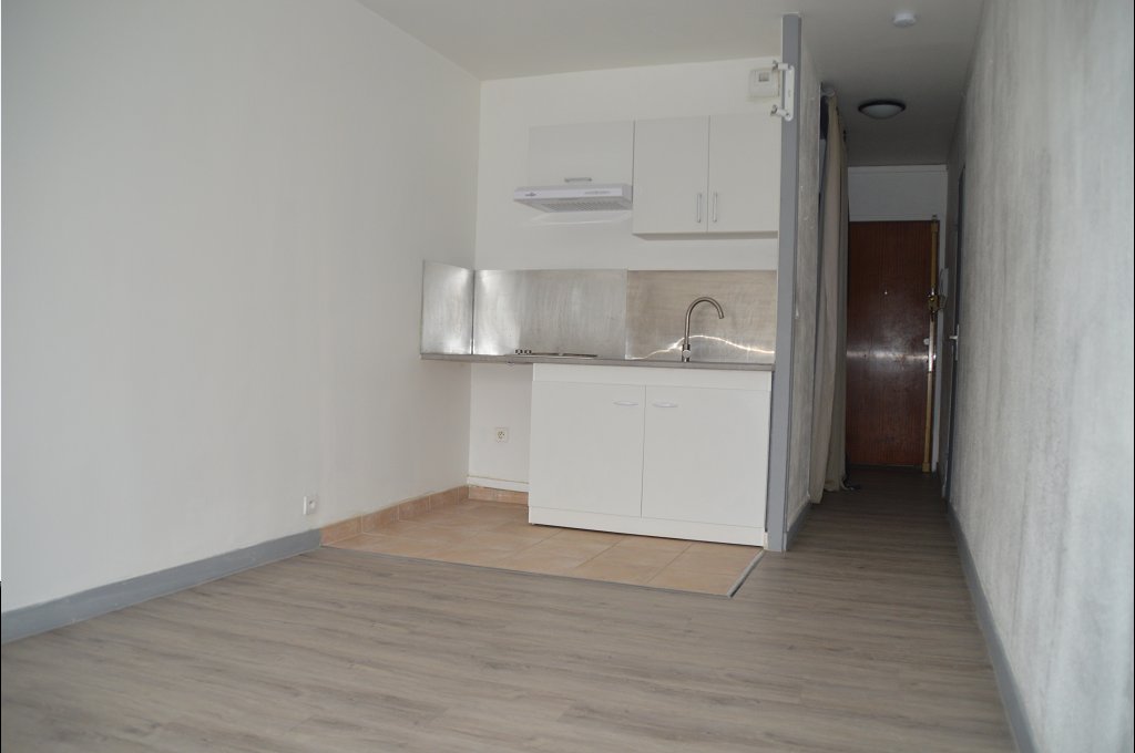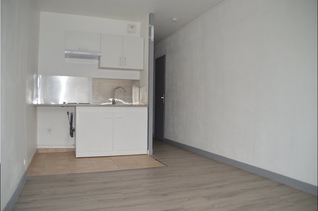 A louer studio MEUBLE au 1er étage sans ascenseur comprenant pièce de vie, coin cuisine aménagée et équipée, salle d'eau avec WC. Une place de stationnement en extérieur.