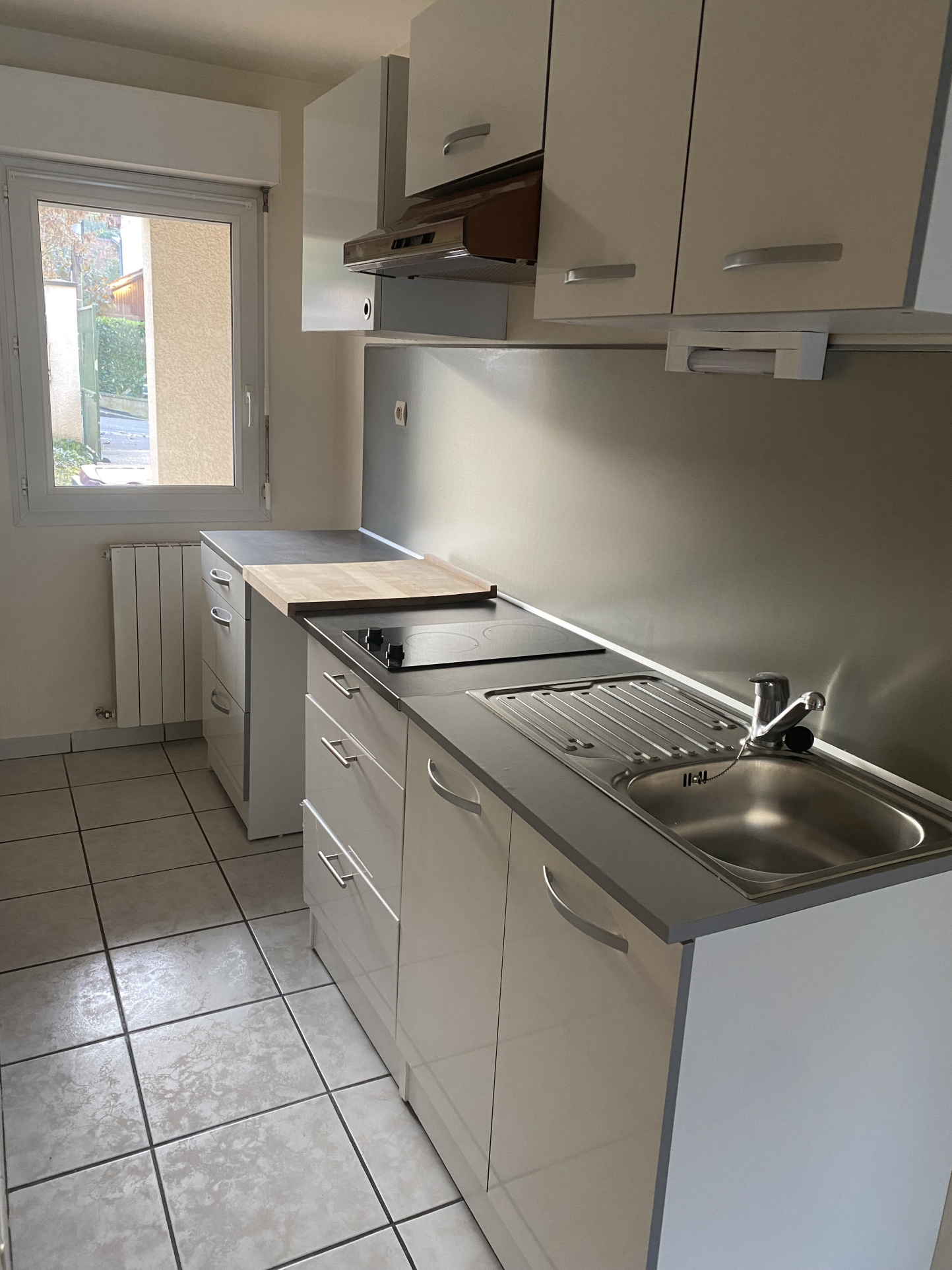 15' RER, dans construction récente, studio : coin-cuisine aménagé (plaques, hotte), séjour, salle d'eau avec wc.