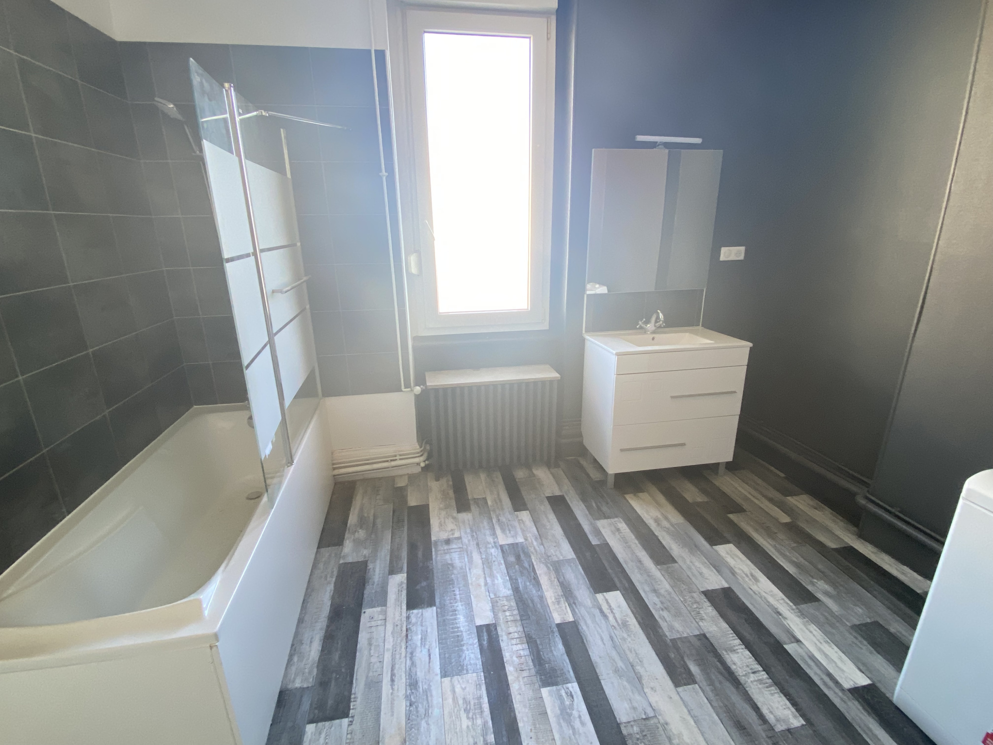 Rue Président Wilson - Appartement T2 de 55m² au 1er étage d'un petit immeuble, entièrement rénové comprenant une entrée, une cuisine équipée ouverte sur séjour, une grande chambre, salle d'eau/ WC.