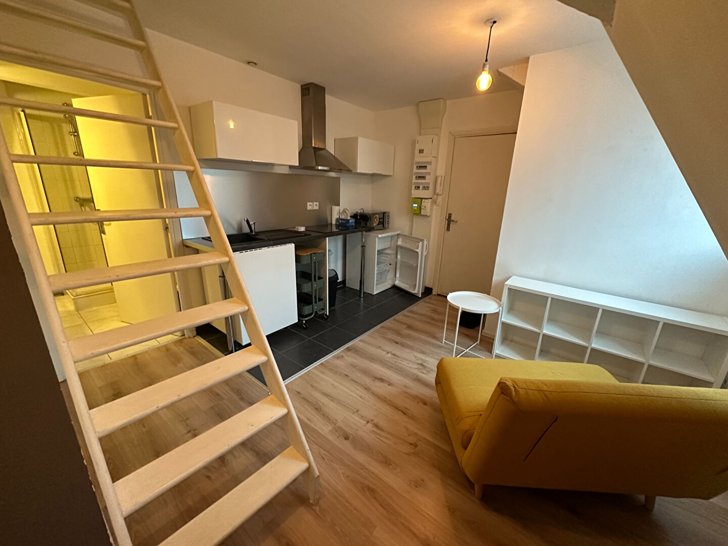 Rue de la Clef, au dernier étage, appartement de 22.26m2 (31.51m2 au sol) comprenant une petite pièce de vie avec cuisine équipée et meublée, une salle de bain avec WC, à l'étage une mezzanine faisant office de chambre.