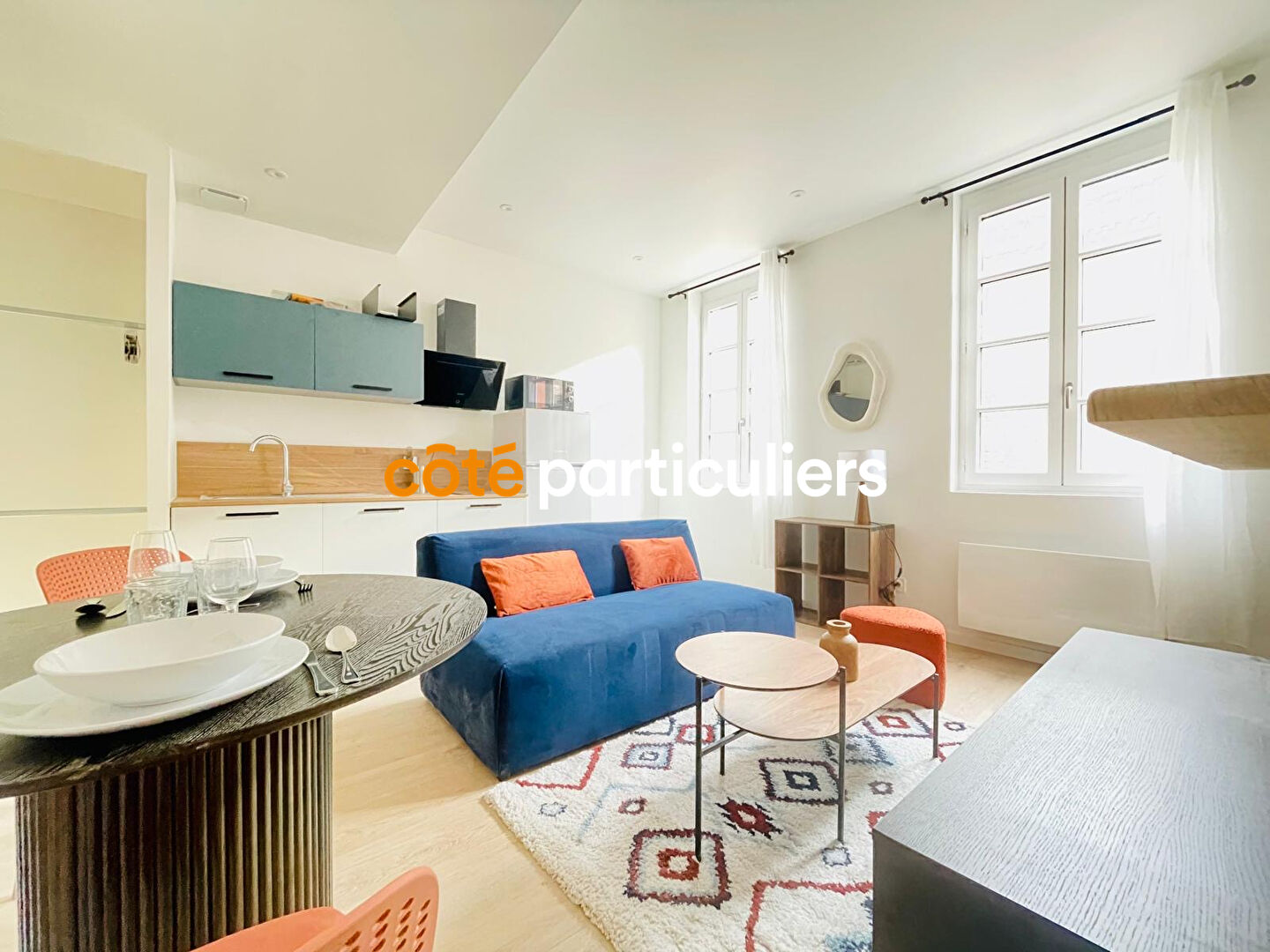 (G) Coté Particuliers vous propose un T2 meublé, situé au 1er étage, comprenant une entrée avec salon séjour, une cuisine équipée, une chambre, une salle d'eau