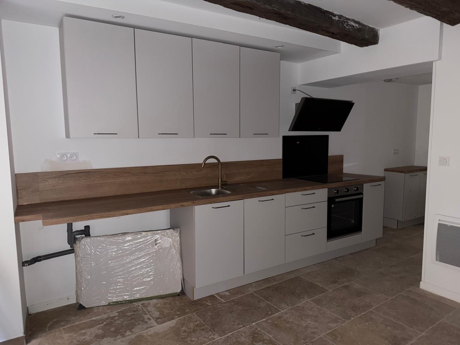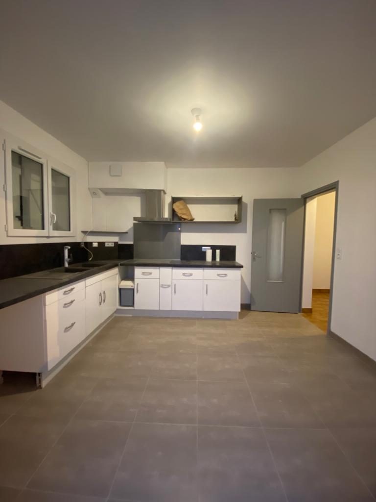 Cuisine aménagée et équipée, trois chambres, séjour, salle de bains avec baignoire et douche, ...