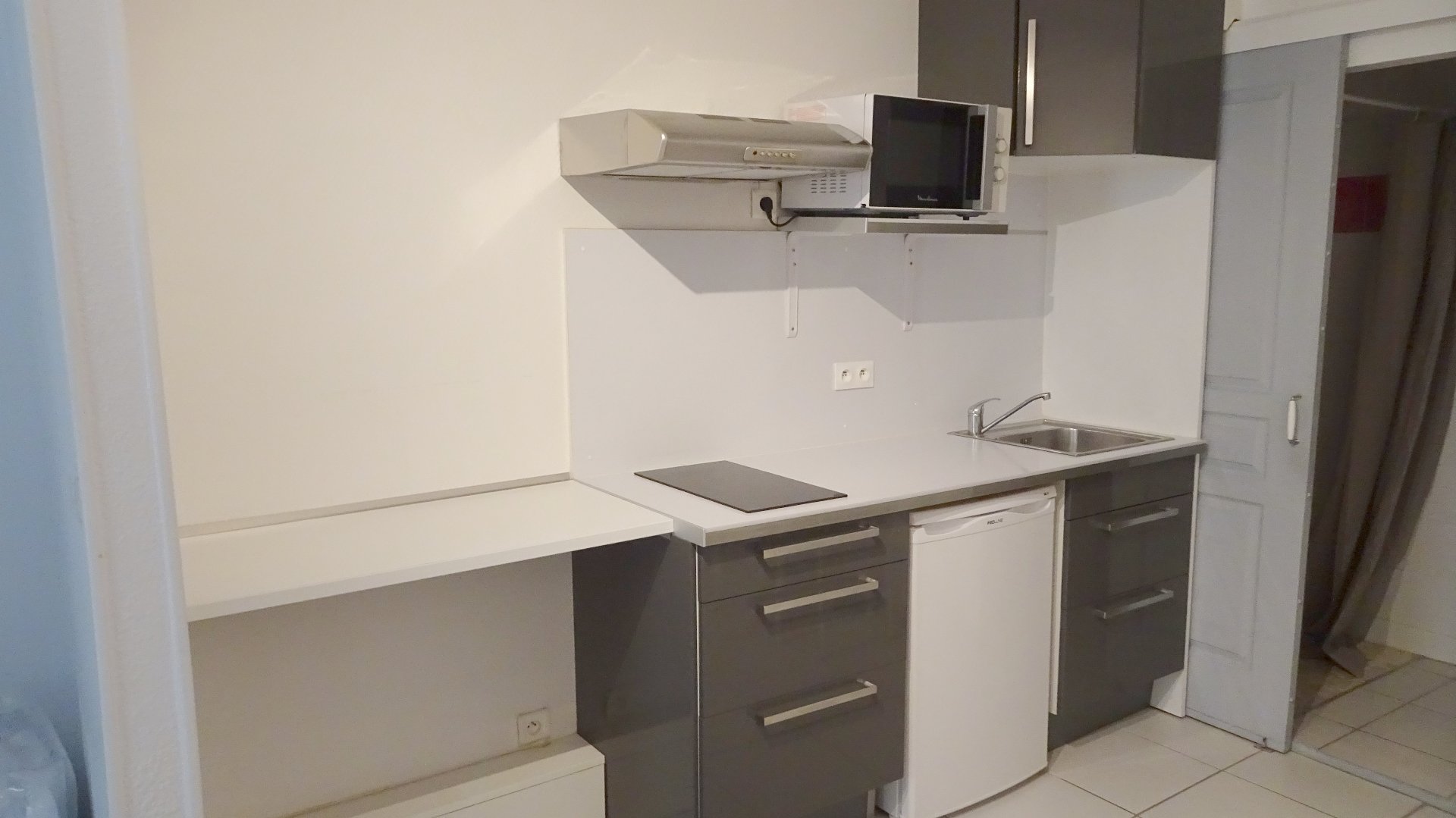Disponible à la location à partir de Début Juin, nous vous proposons ce joli studio fraichement rénové comprenant : séjour avec cuisine aménagée et équipée (réfrigérateur, plaque induction, four, hotte), salle de bains avec toilettes.