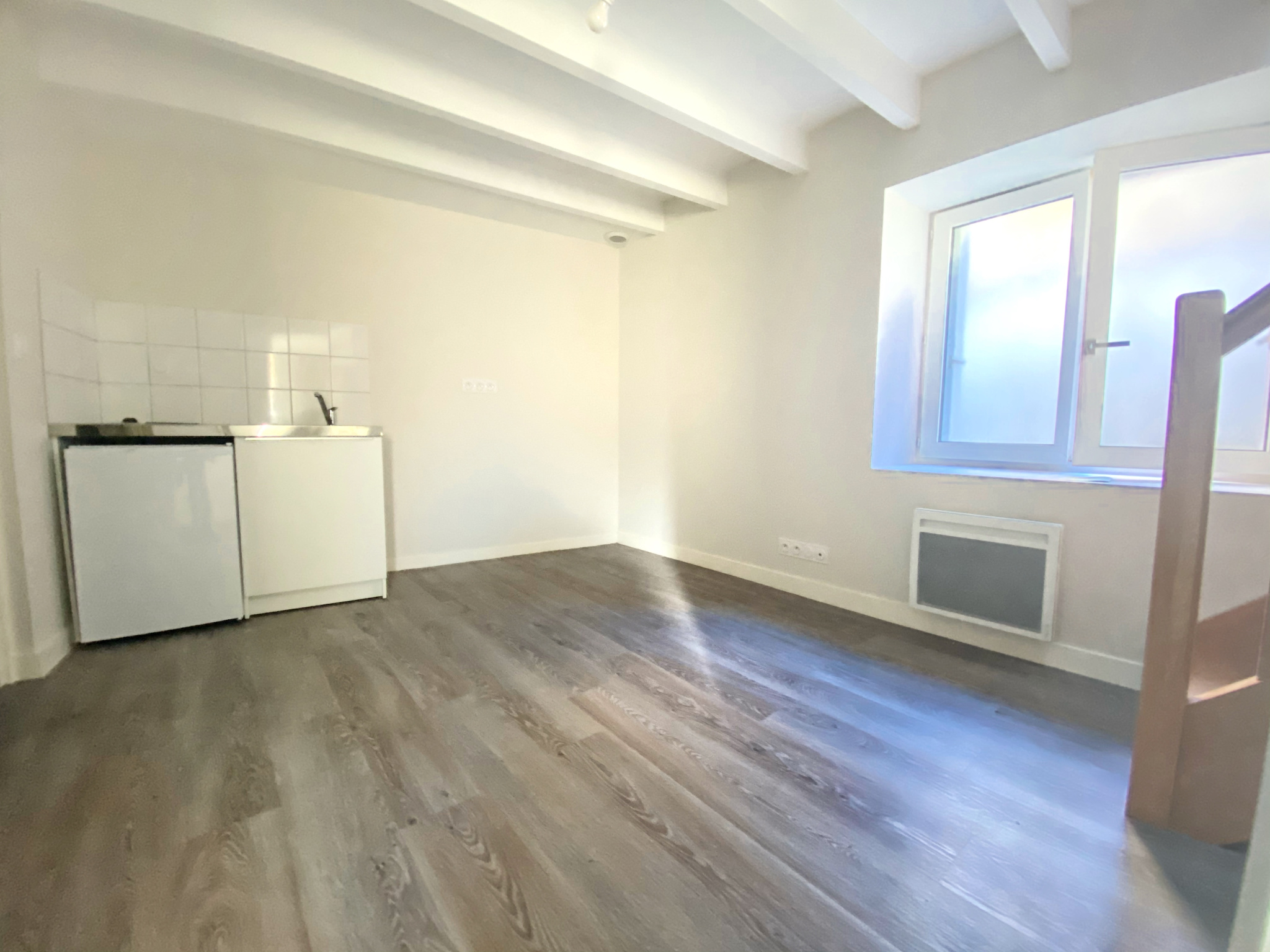 Situé au premier étage, il comprend un séjour ouvert sur un coin cuisine, une salle d'eau avec WC indépendant et une chambre.