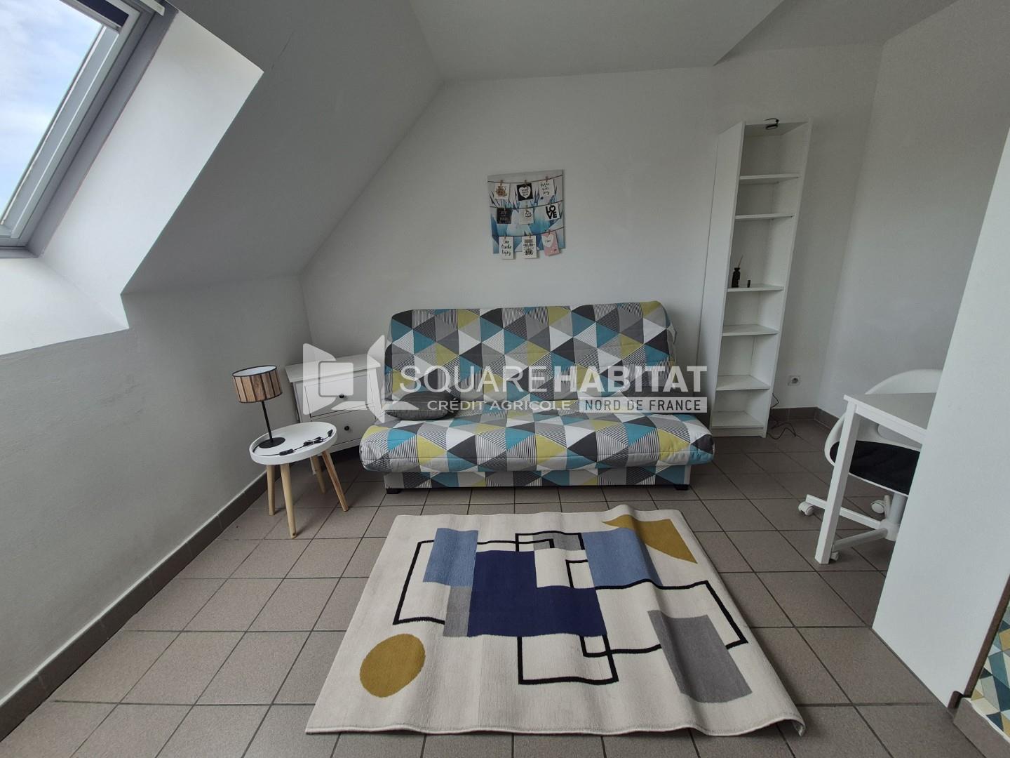 Située à Cambrai en plein centre ville, cette chambre meublée lumineuse et confortable avec coin kitchenette meublé et équipé (frigo, plaques, rangements...).