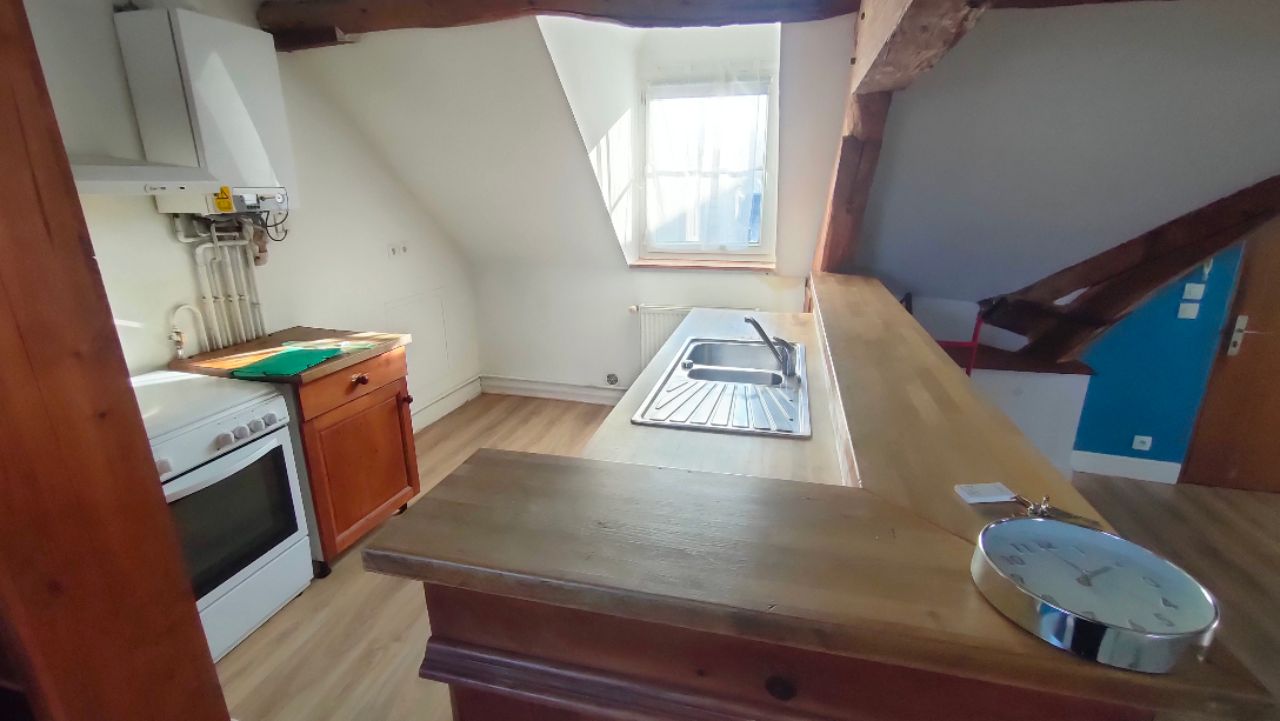 Centre Ville de Gisors, bel appartement en duplex de 59m² au 1er étage, offrant: Entrée avec rangement, A l'étage: Une grande pièce de vie de 33m² avec coin cuisine aménagée, salle de bains avec wc, 1 chambre, 1 mezzanine, chauffage central gaz de ville, ...