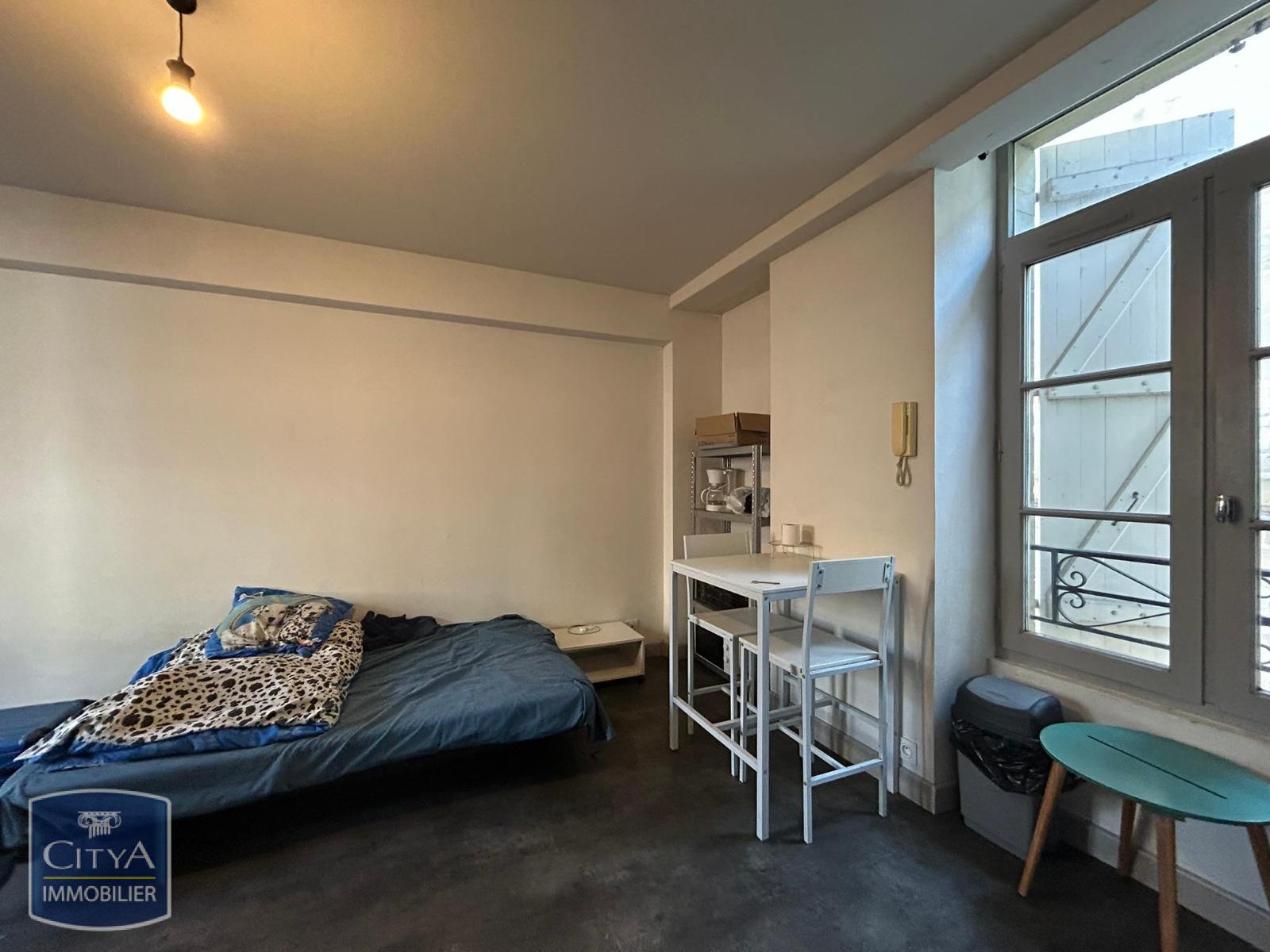 Appartement T1 en centre ville comprenant une pièce à vivre, une kitchenette avec hotte, plaque de cuisson et réfrigérateur, une salle d'eau avec WC. Chauffage électrique.