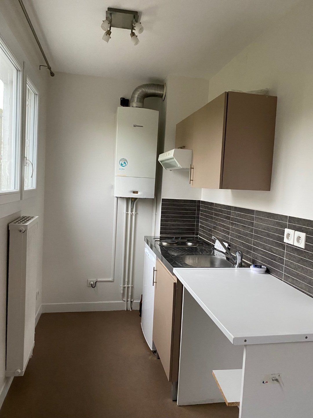 Il se compose d'une entrée sur la pièce de vie, un coin cuisine (bloc évier, une arrivée d'eau), une salle d'eau et des toilettes séparées.