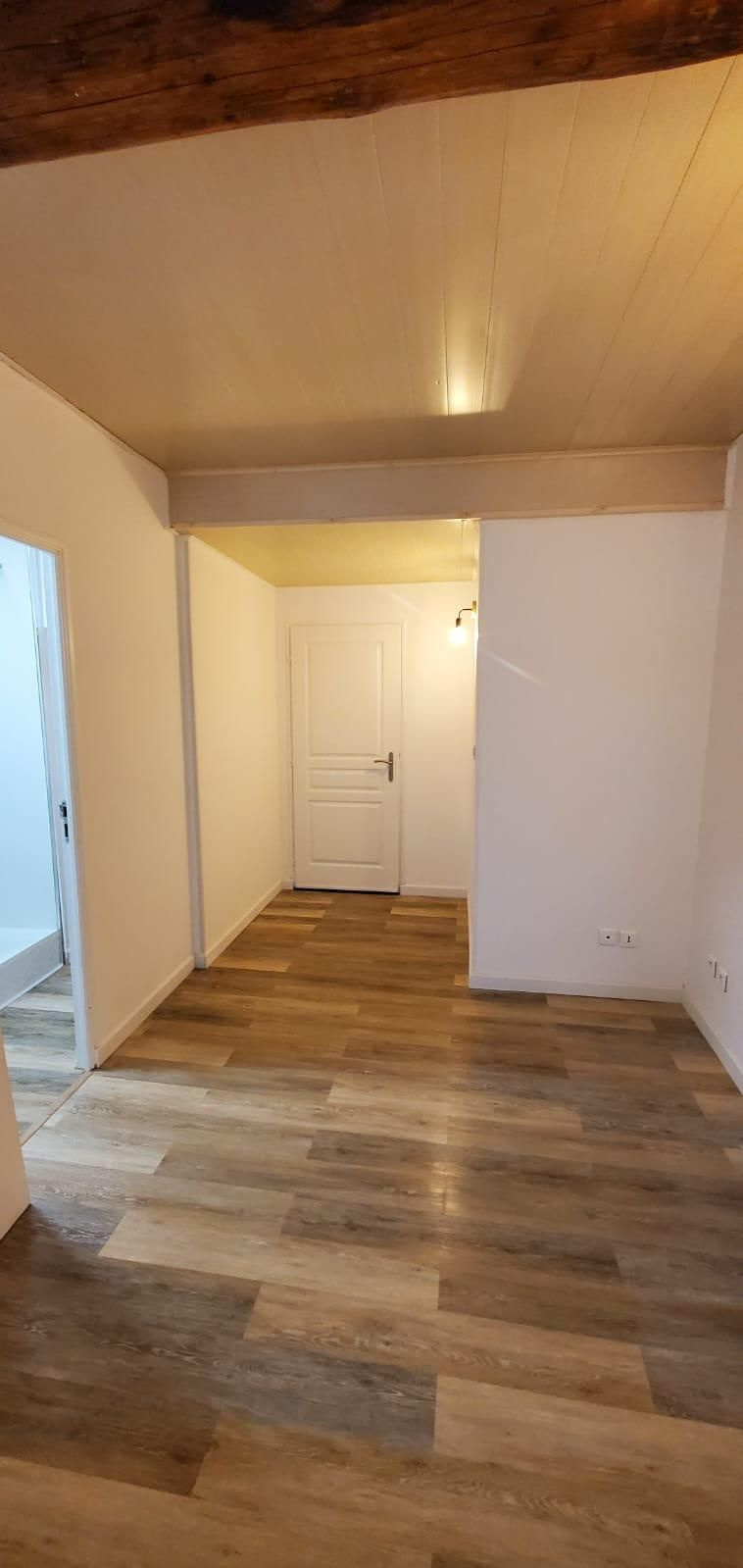 Appartement T2 au 1er étage comprenant séjour donnant sur un petit balcon, cuisine, cellier, dégagement, salle de bains, WC, chambre avec placards de