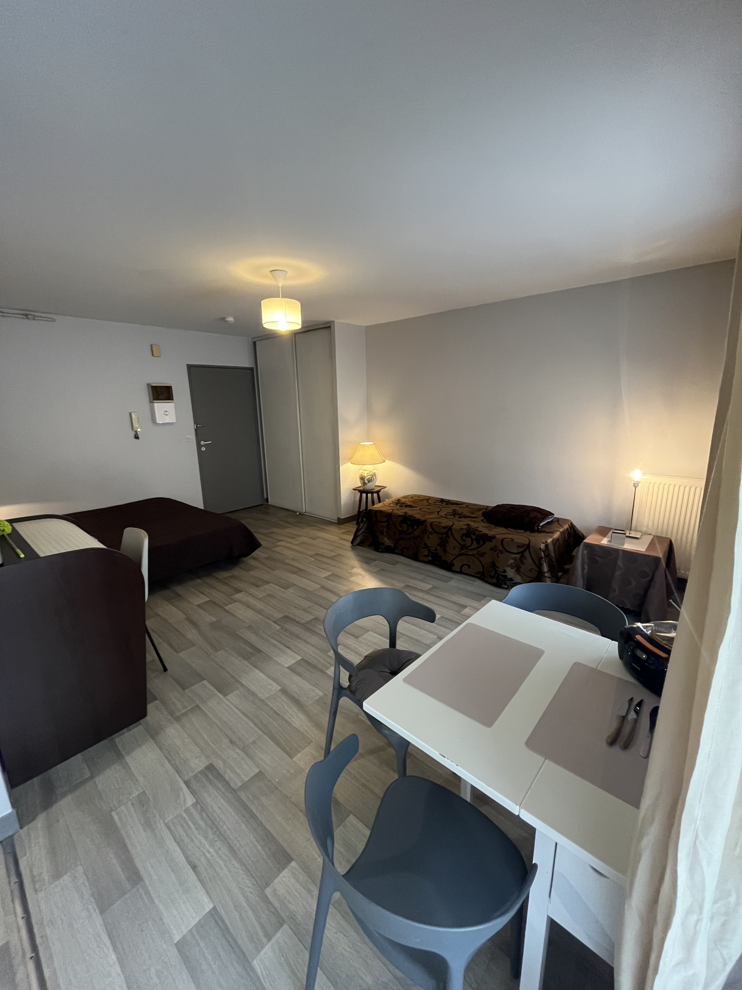 GRAND STUDIO MEUBLÉ COMPOSÉ : ENTREE AVEC PLACARDS, SEJOUR AVEC COIN NUIT, CUISINE SEPARÉ, SALLE DE BAINS SEPARÉ.