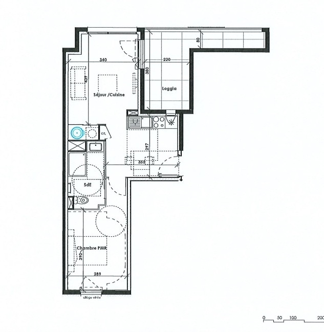 Il est composé d'une cuisine ouverte sur un séjour, une chambre avec placard, une salle d'eau avec WC