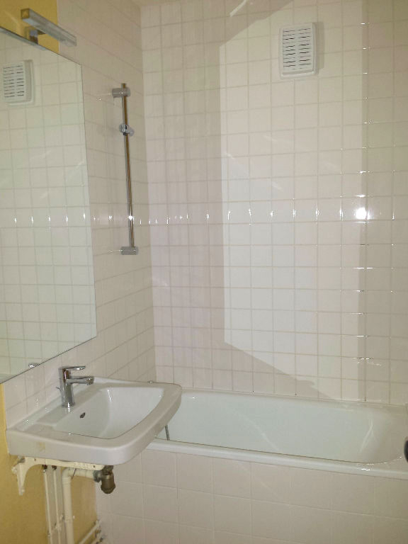 Studio au 3ème étage avec ascenseur, situé rue de Fougères, comprenant : pièce de vie avec placard et balcon, coin cuisine équipée (plaque électrique, frigo), salle de bains avec WC.
