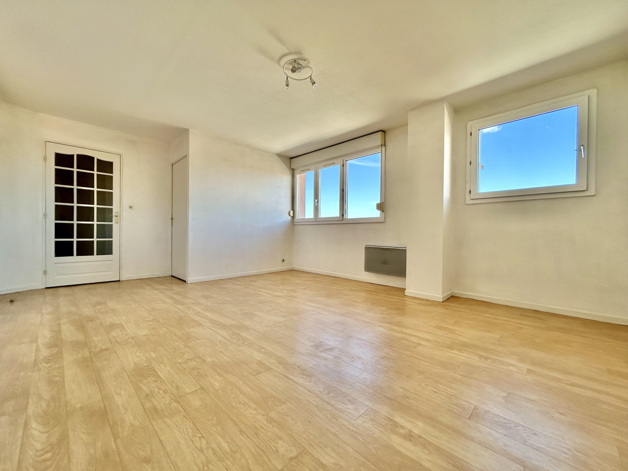 Le salon, d'une superficie de 22,2 m², est un espace convivial. La cuisine, entièrement aménagée. Vous apprécierez également la luminosité naturelle qui inonde l'appartement.