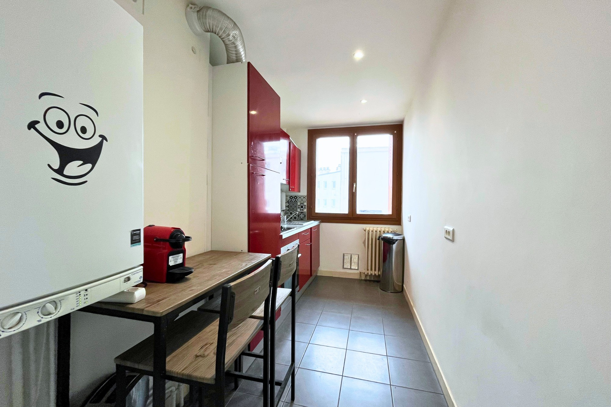 Studio meublé au 1er Etage sur cour rénové comprenant une pièce principale avec kitchenette, une salle d'eau avec WC