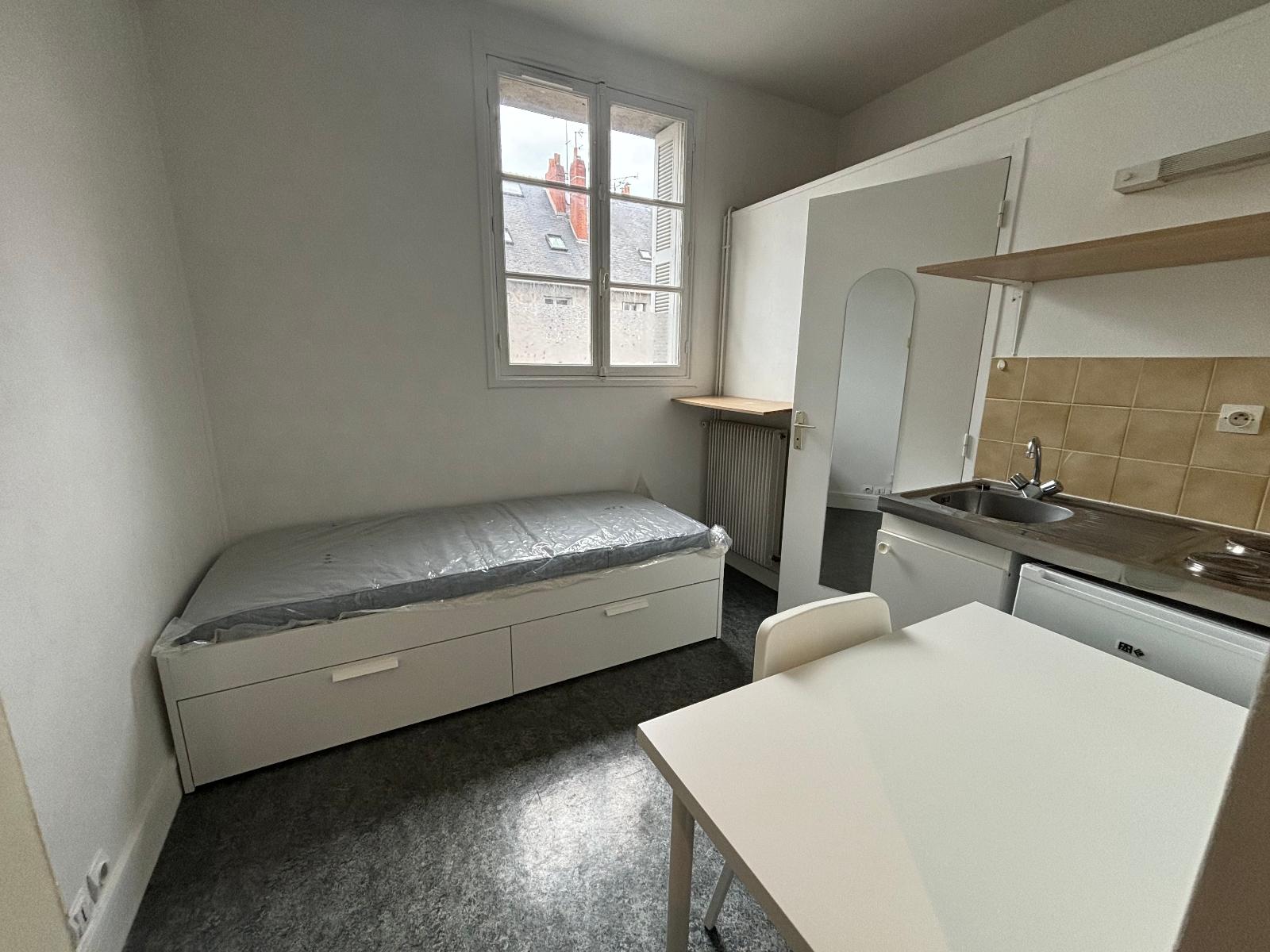 Hyper Centre - Tours Hyper centre, studio NON MEUBLÉ comprenant une pièce principale avec kitchenette équipée, salle d'eau, WC. Proche tramway et faculté. Le bien est loué avec un lit et une table avec chaise.