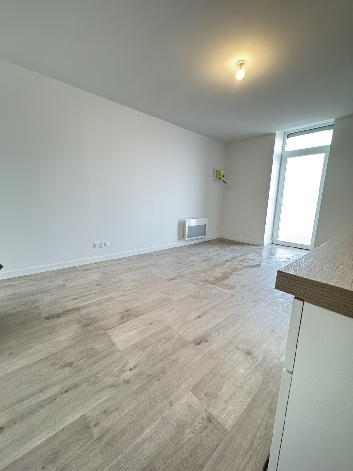 A moins de deux minutes à pied de la gare de Bellevigny, un appartement entièrement neuf offrant : une pièce de vie avec cuisine aménagée et équipée, dégagement, une grande chambre avec dressing, salle d'eau et wc séparés.