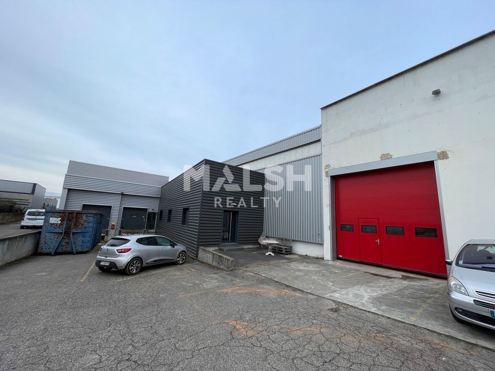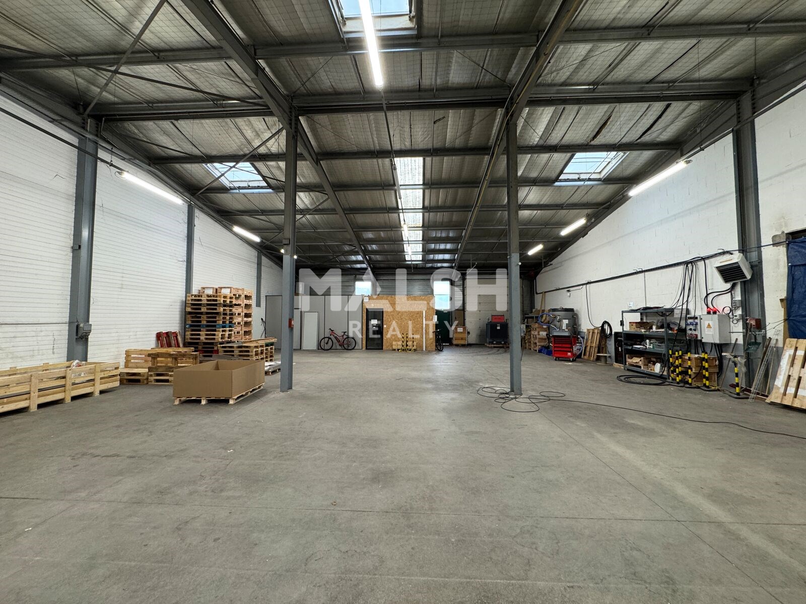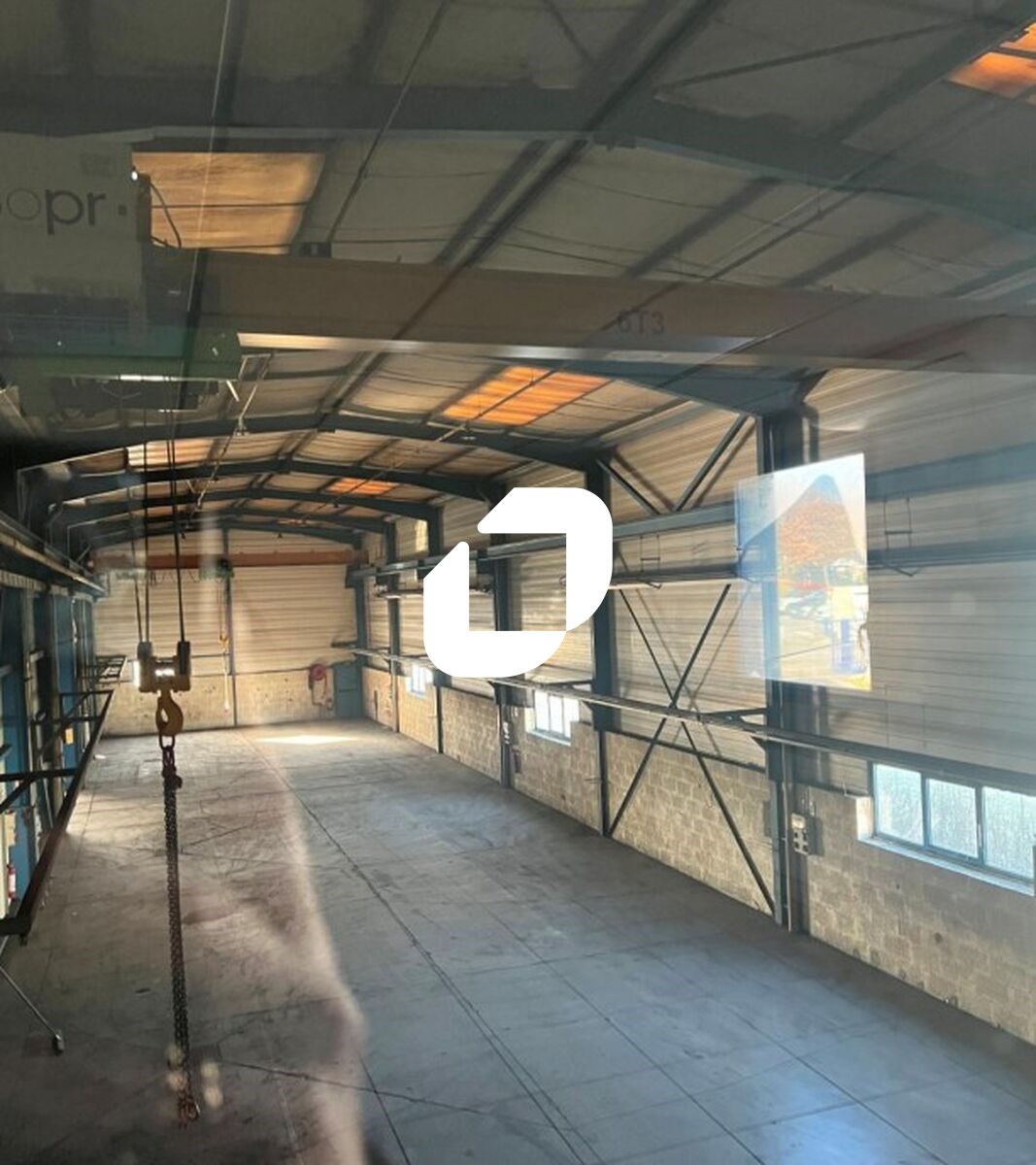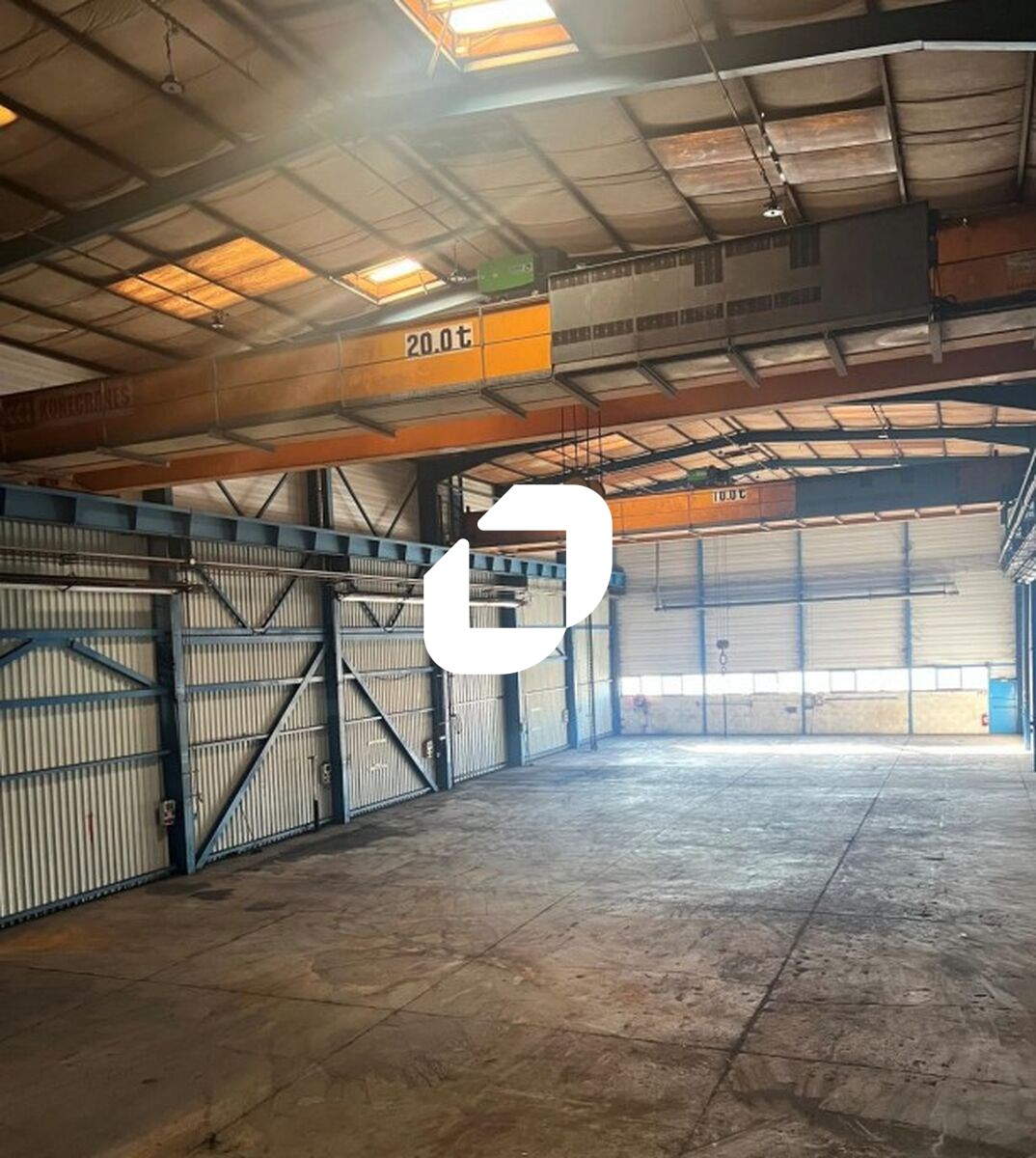Il est composé d'une porte à quai, de deux portes sectionnelles de 5,60X4,50 d'une hauteur de 6,35 mètres et de 75 m²...