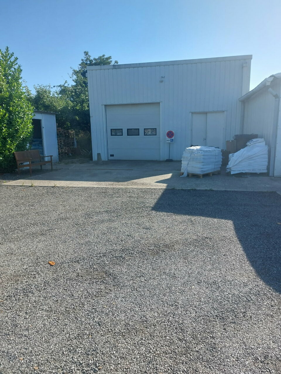 Dans un ensemble plus vaste, un entrepôt d'environ 220 m², ancien laboratoire, divisible en 2 lots de 103 et 117 m².* Construit en bardage double peau et toiture bac acier isolé.