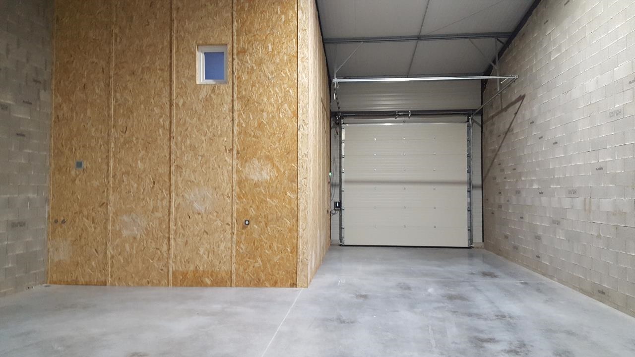 Dans un site de stockage et atelier plus vaste, entrepôt rénové d'environ 355 m² avec un accès par une grande porte sectionnelle électrique de 3.50 m de haut.