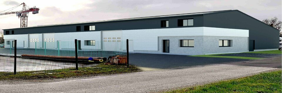 Sur un axe passant, dans un ensemble immobilier en cours de construction, 2 bâtiments d'une surface développée totale d'environ 890 m², soit 445 m² chacun, divisibles à partir de 222,5 m².* Construction en bardage double peau, charpente lamellé collé...