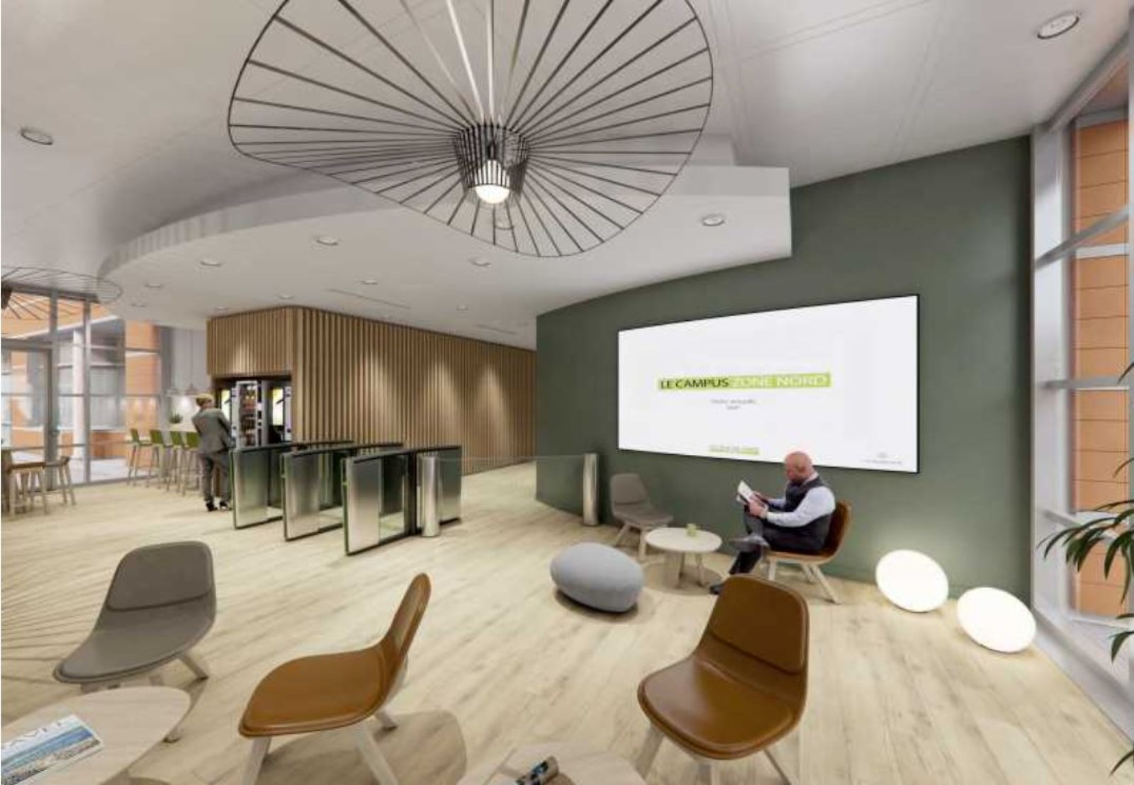 Services sur place : accueil avec personne, sièges d'accueil pour clients, distributeurs de boissons, ascenseur, salle de repas...