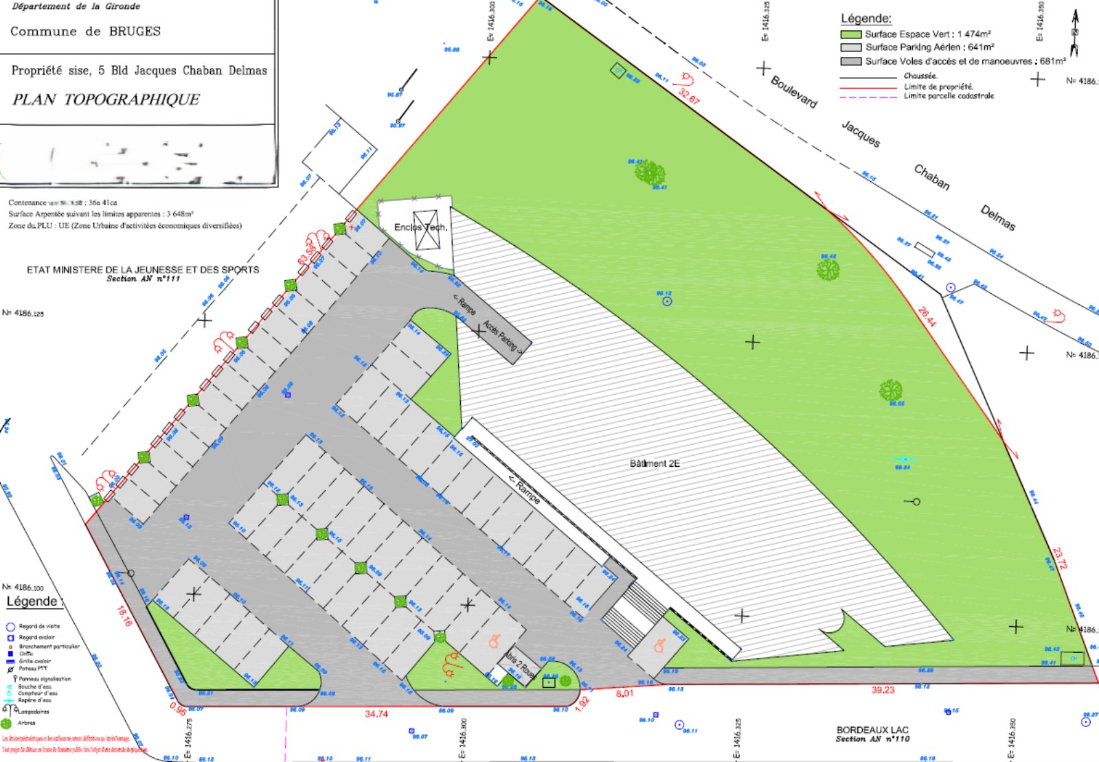 A vendre / à louer, immeuble de bureaux extrêmement bien placé à proximité de l'aéroport de Mérignac et du tramway. Bâtiment indépendant de 850 m² à rénover, disposant de nombreux emplacements de parking extérieurs (38).