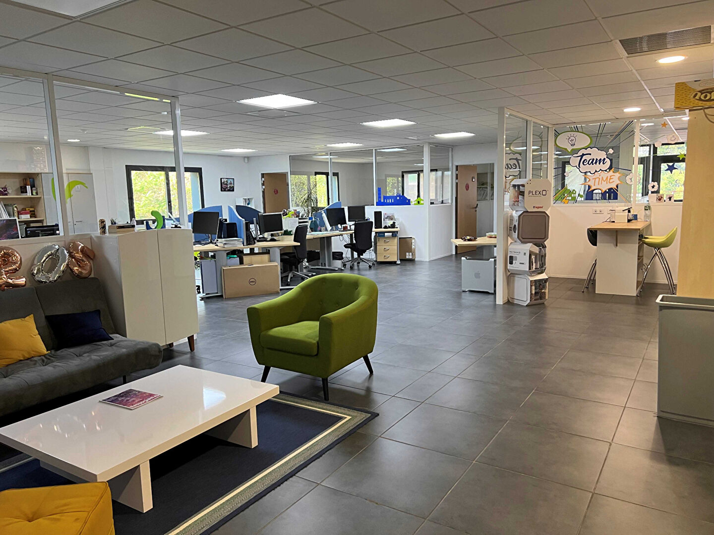 - 80m² composé de 2 bureaux + sanitaires : 773.00 Euro / HT -mensuel + 60.00 Euro de charges <...