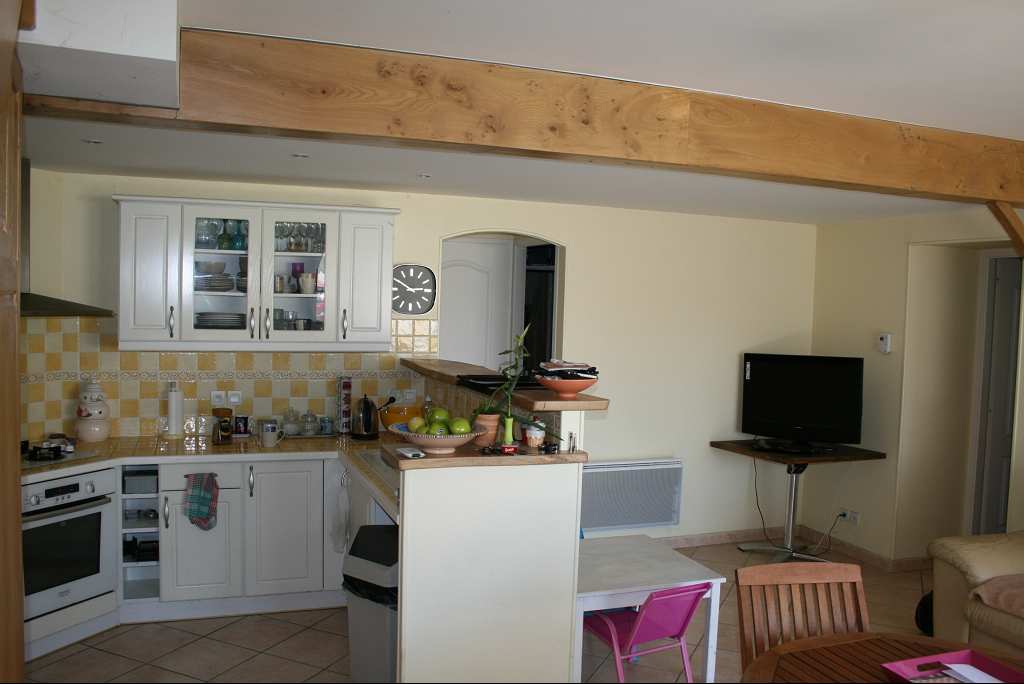 Elle vous offre : une entrée, séjour, cuisine équipée (plaque de cuisson, four, hotte), 2 chambres, salle de bains, toilettes, cellier, chaufferie.