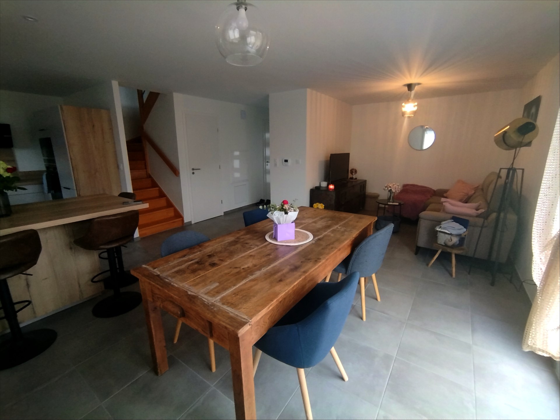 Magnifique maison construite en 2024 d'une surface de 85 m² comprenant :<BR><BR>Au rez-de-chaussée : entrée avec armoire murale, WC, buanderie, cuisine équipée ouverte sur une pièce de vie de 35m². <BR><BR>A l'étage : dégageme...