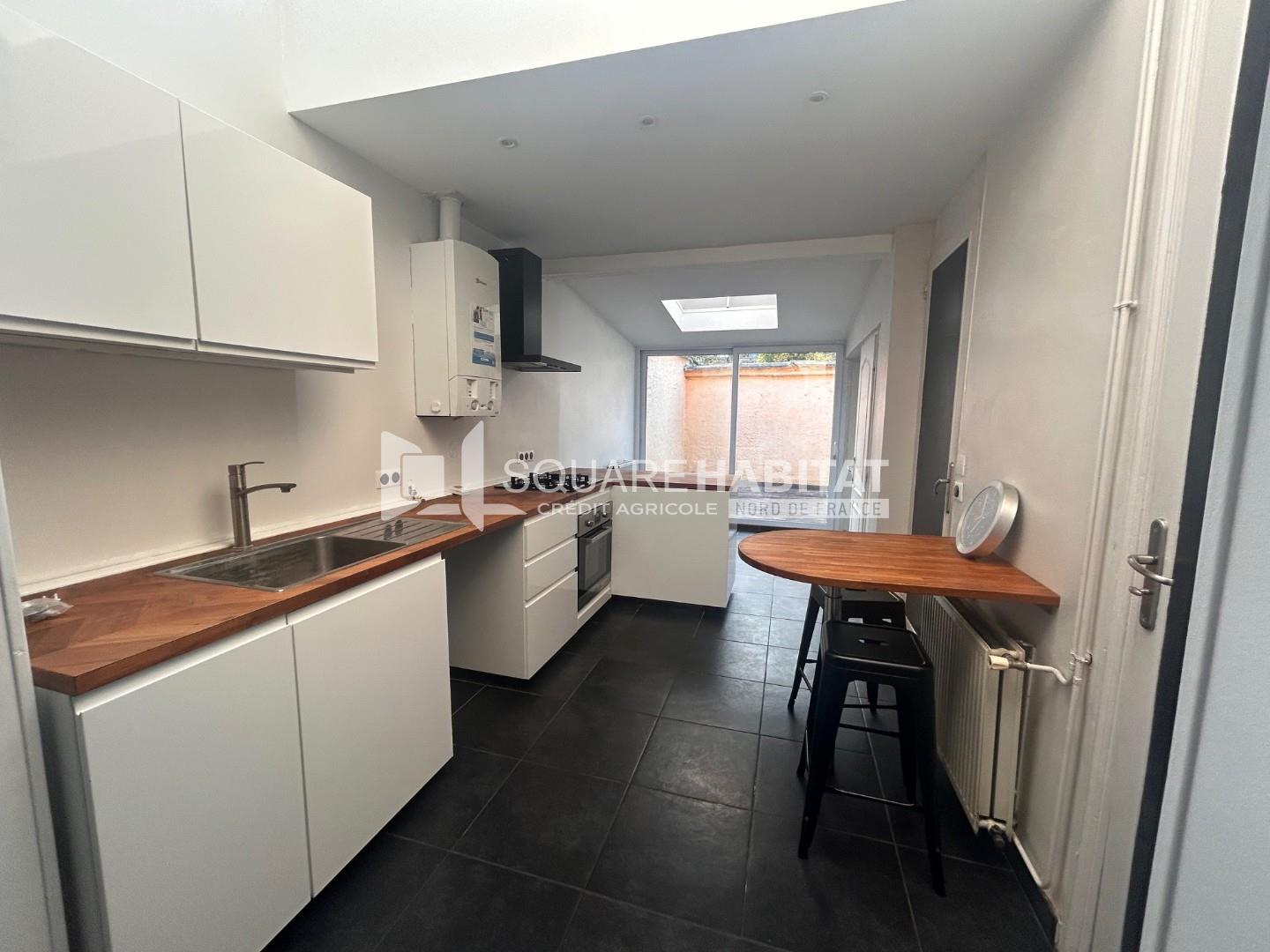 RUE MONGE ROUBAIX - ** MAISON LOUEE ENTIEREMENT MEUBLEE ET EQUIPEE ** *** CONDITIONS GLI : CDI ET 3X LE MONTANT DU LOYER OBLIGATOIRE *** Elle une entrée, une belle pièce de vie, une grande cuisine entièrement équipée et meublée, buanderie et WC. Les étages off...
