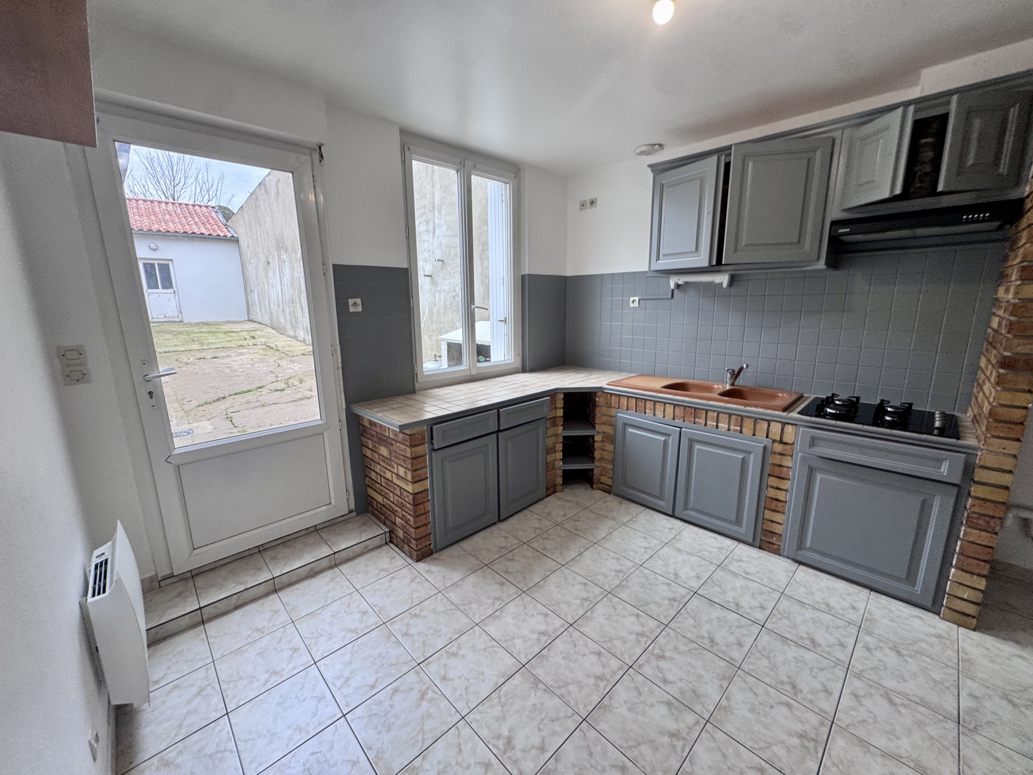 A louer, maison comprenant séjour-salon avec cheminée avec insert, un coin cuisine, 2 chambres, salle de bains avec wc. Cellier. Garage.