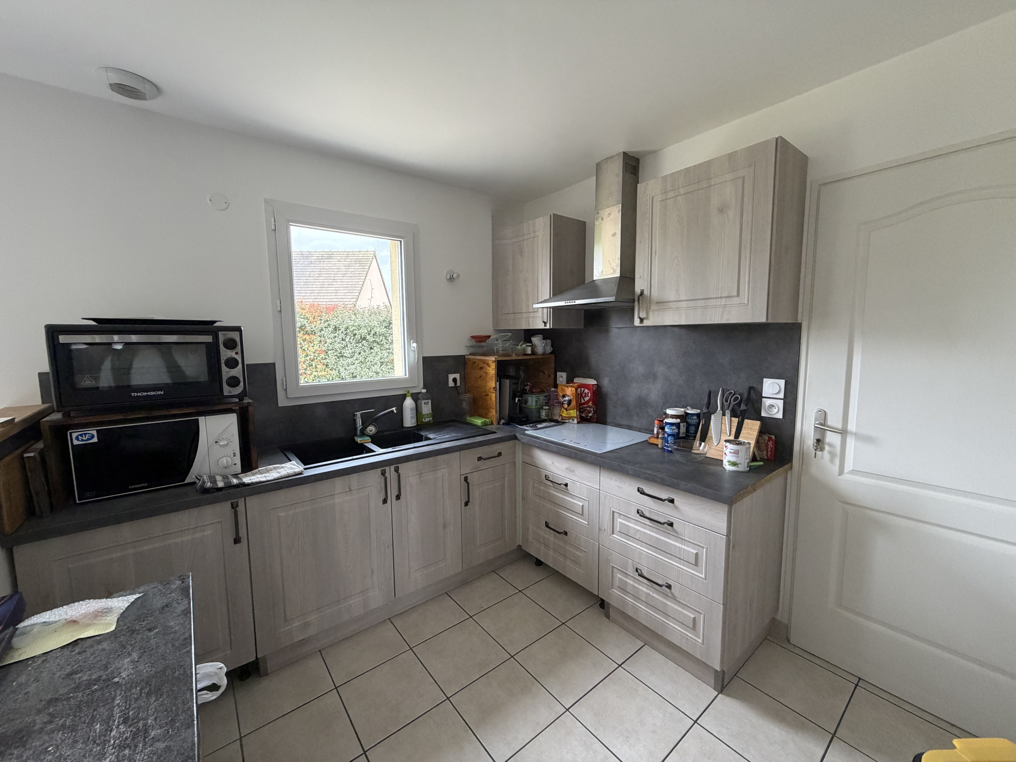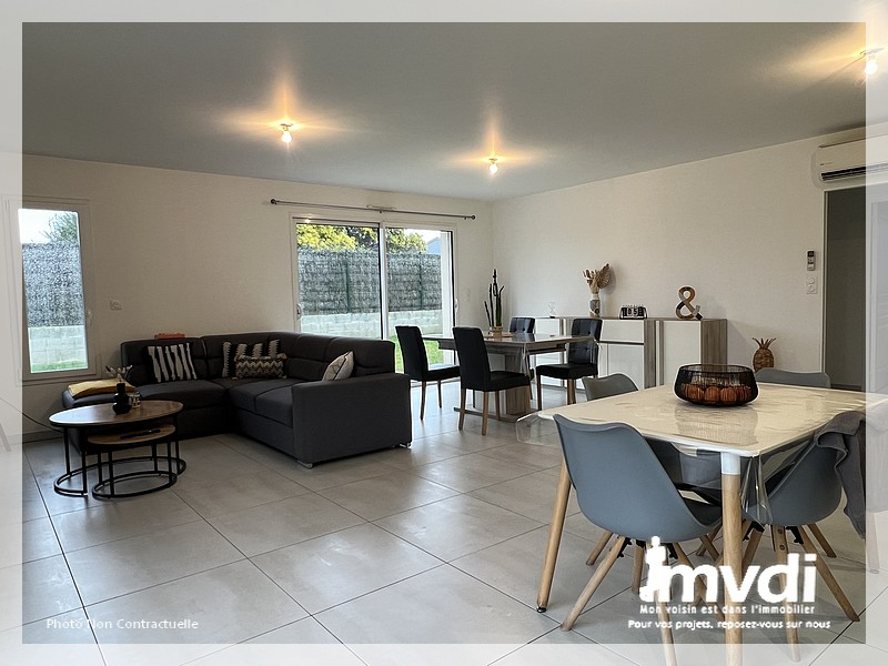 Maison de 83 m² de plain pied confortable avec 27 m² de séjour + cuisine aménagée et équipée d'un four et plaque de cuisson.