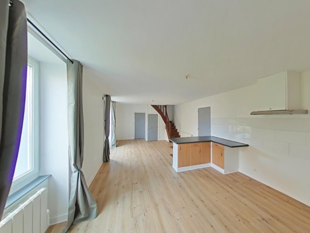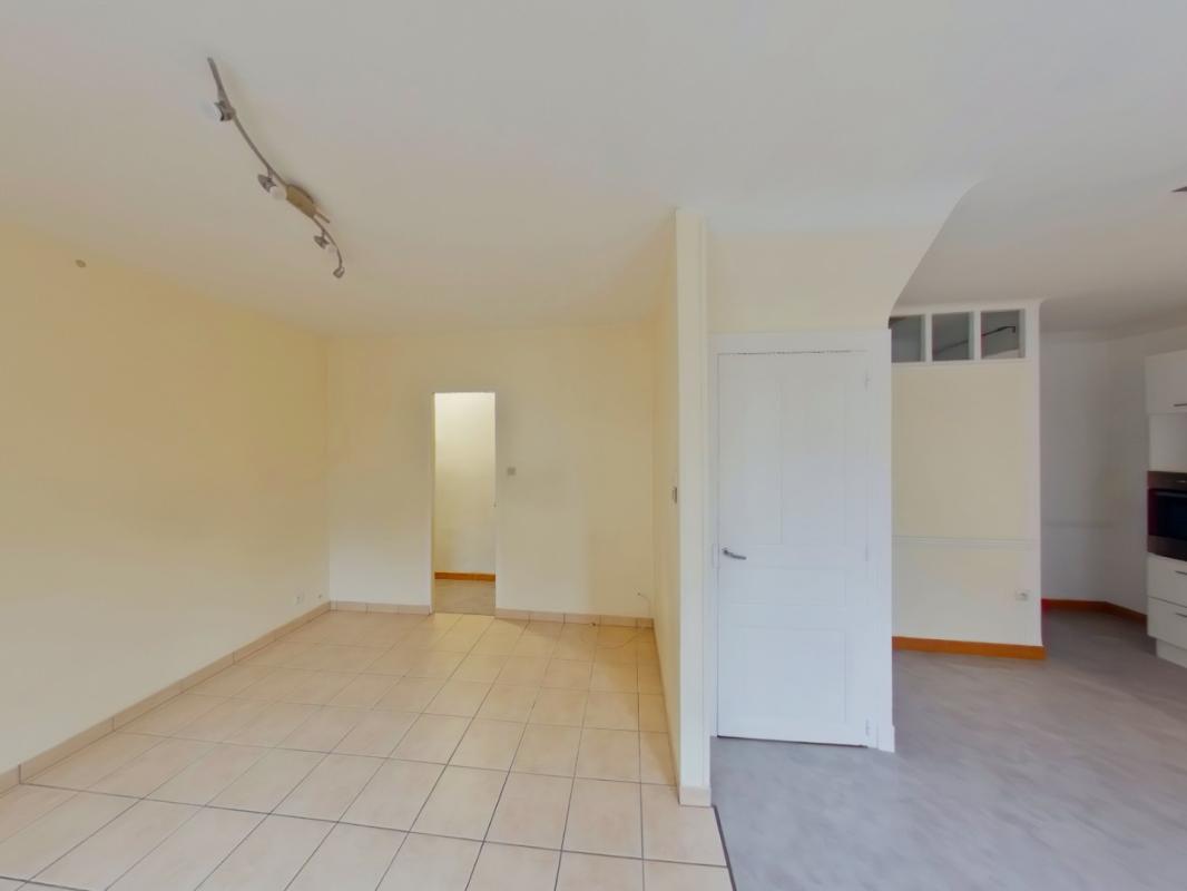 Maison de ville comprenant une entrée avec placard, un salon, une pièce de vie avec cuisine ouverte aménagée et équipée, une arrière-cuisine, un WC.