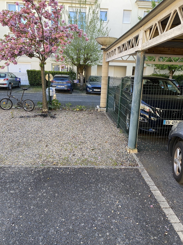Place de stationnement dans résidence sécurisée par un portail.