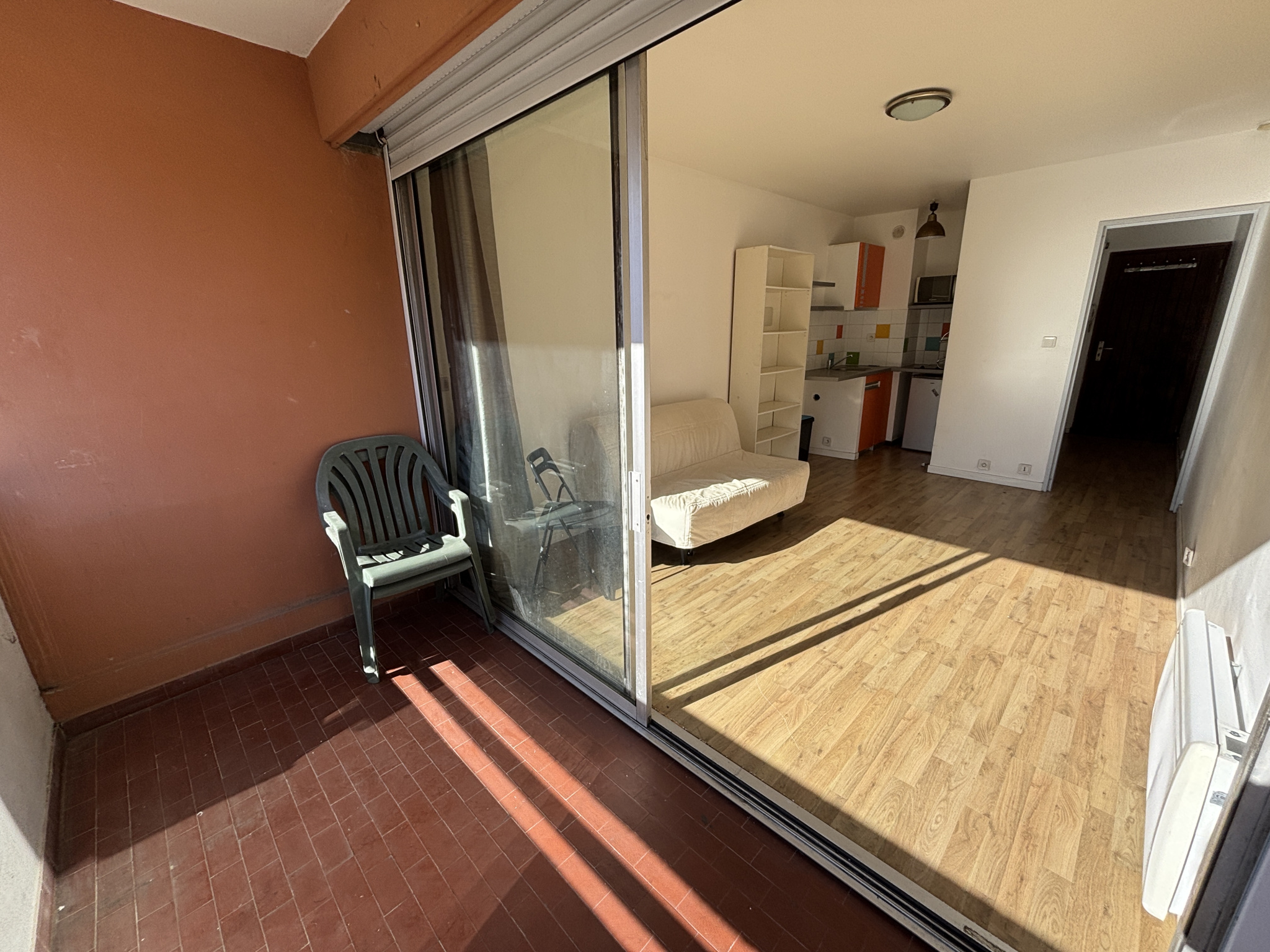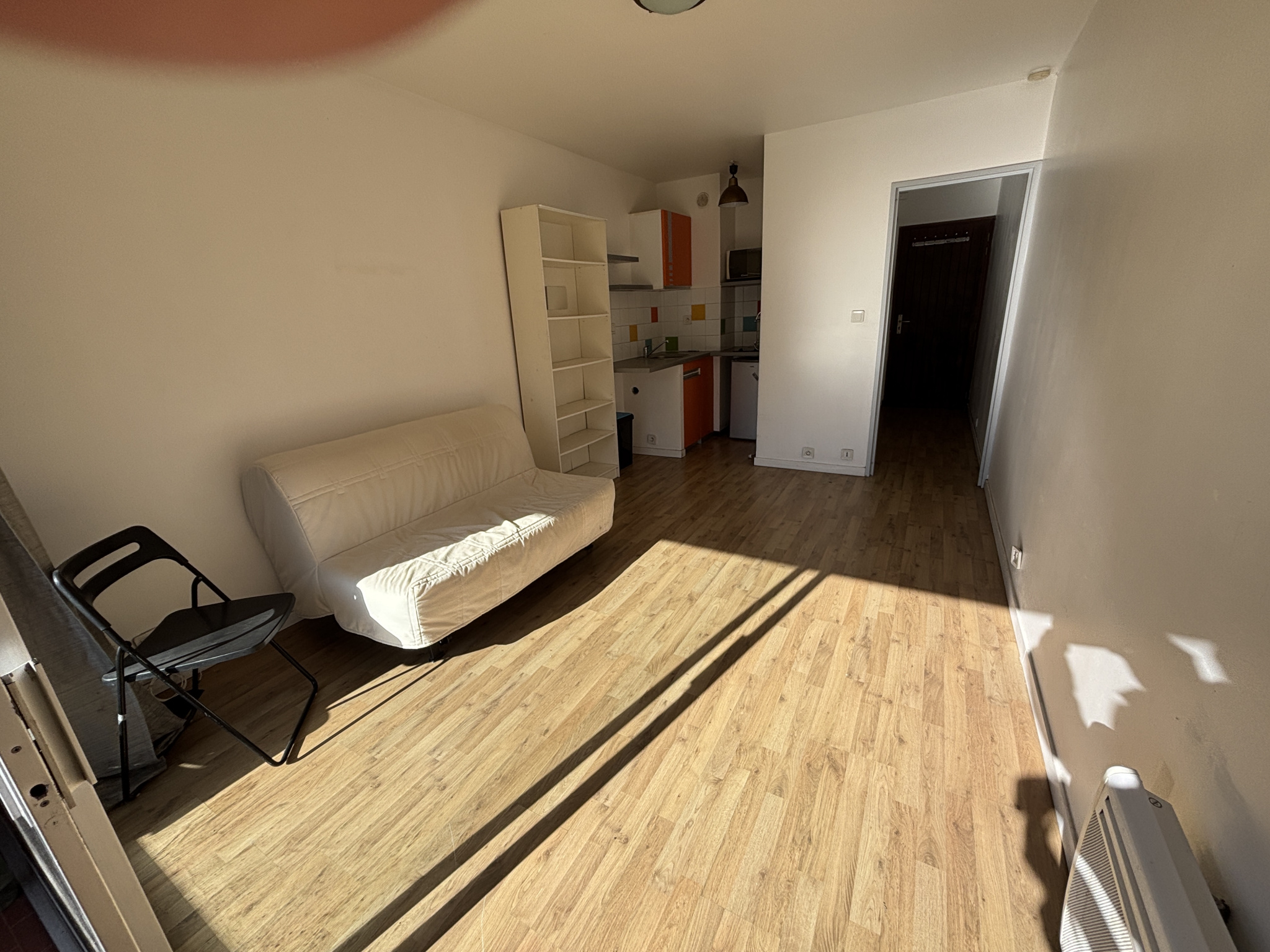 Appartement de type 2 à vendre composé d'une pièce à vivre avec cuisine, d'une chambre et d'une salle de bains avec WC.