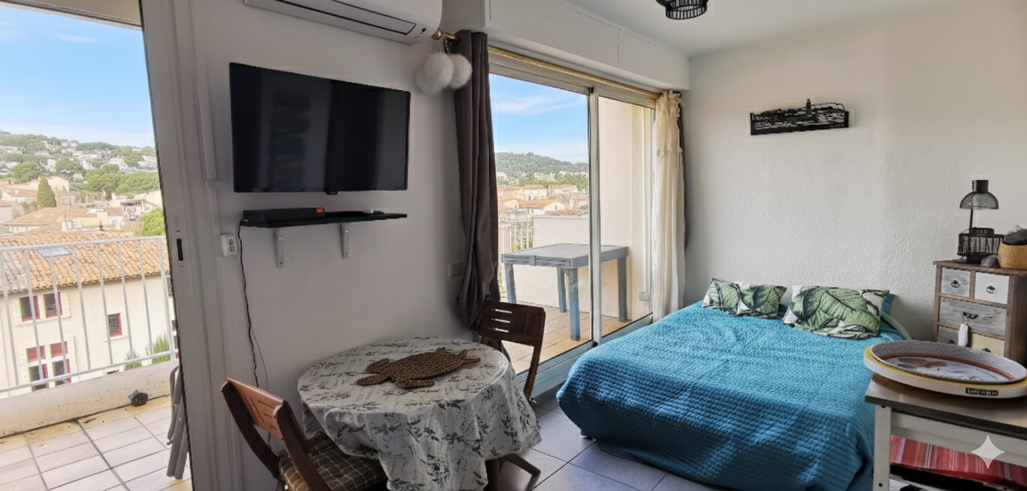 Cassis - Beau studio situé au 4ème et dernier étage d'un petit immeuble du centre ville. Il se compose d'une pièce principale ouvrant sur terrasse de 11 m2 avec belle vue dégagée sur le village, une cuisine ouverte équipée, une salle d'eau et un...
