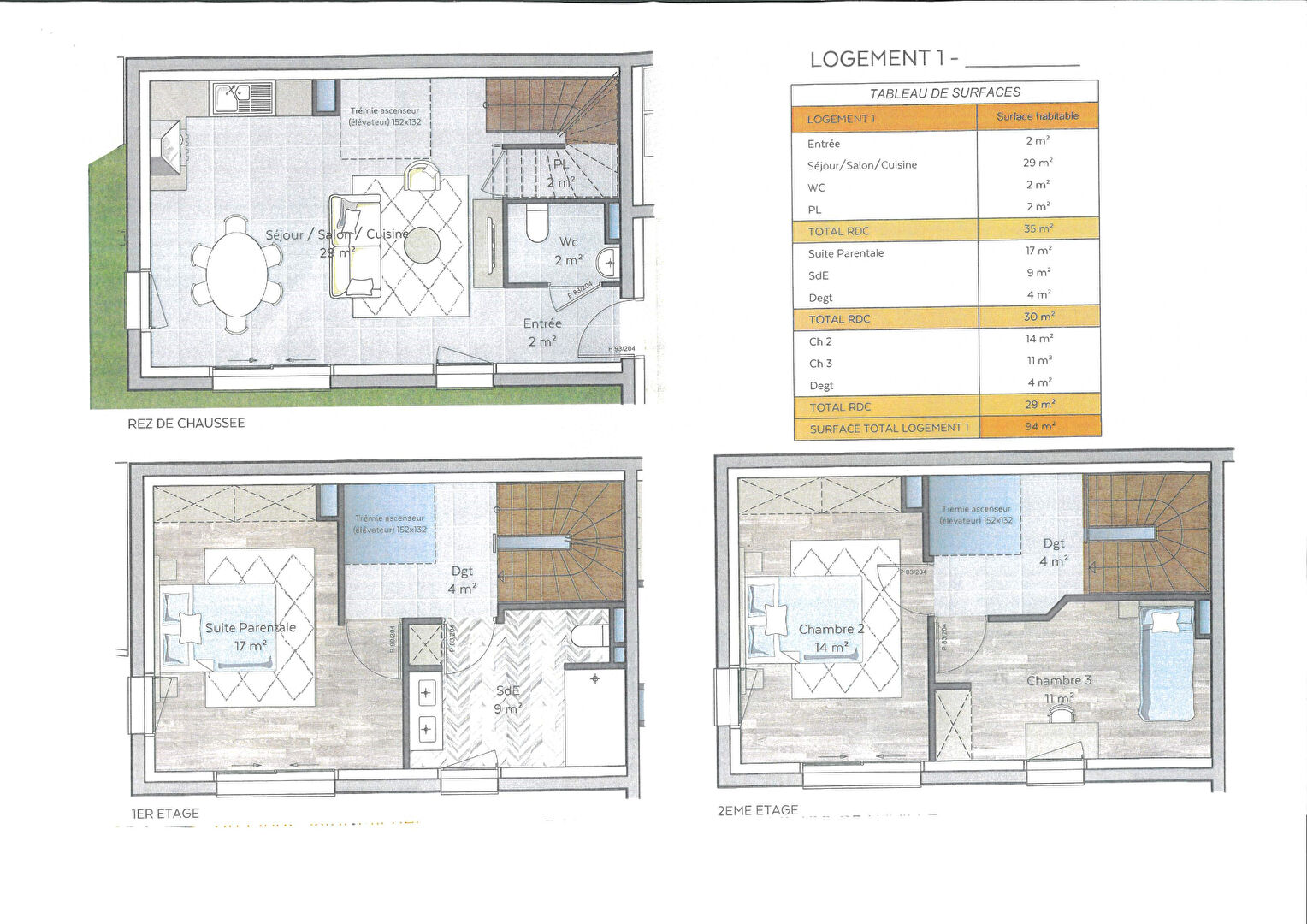 Idéalement situé, plein centre ville de Granville dans une résidence de standing : appartement en triplex d'une surface de 94m² avec au rez-de-chaussée entrée, salon/séjour/cuisine, WC, au 1er étage, une chambre parent...