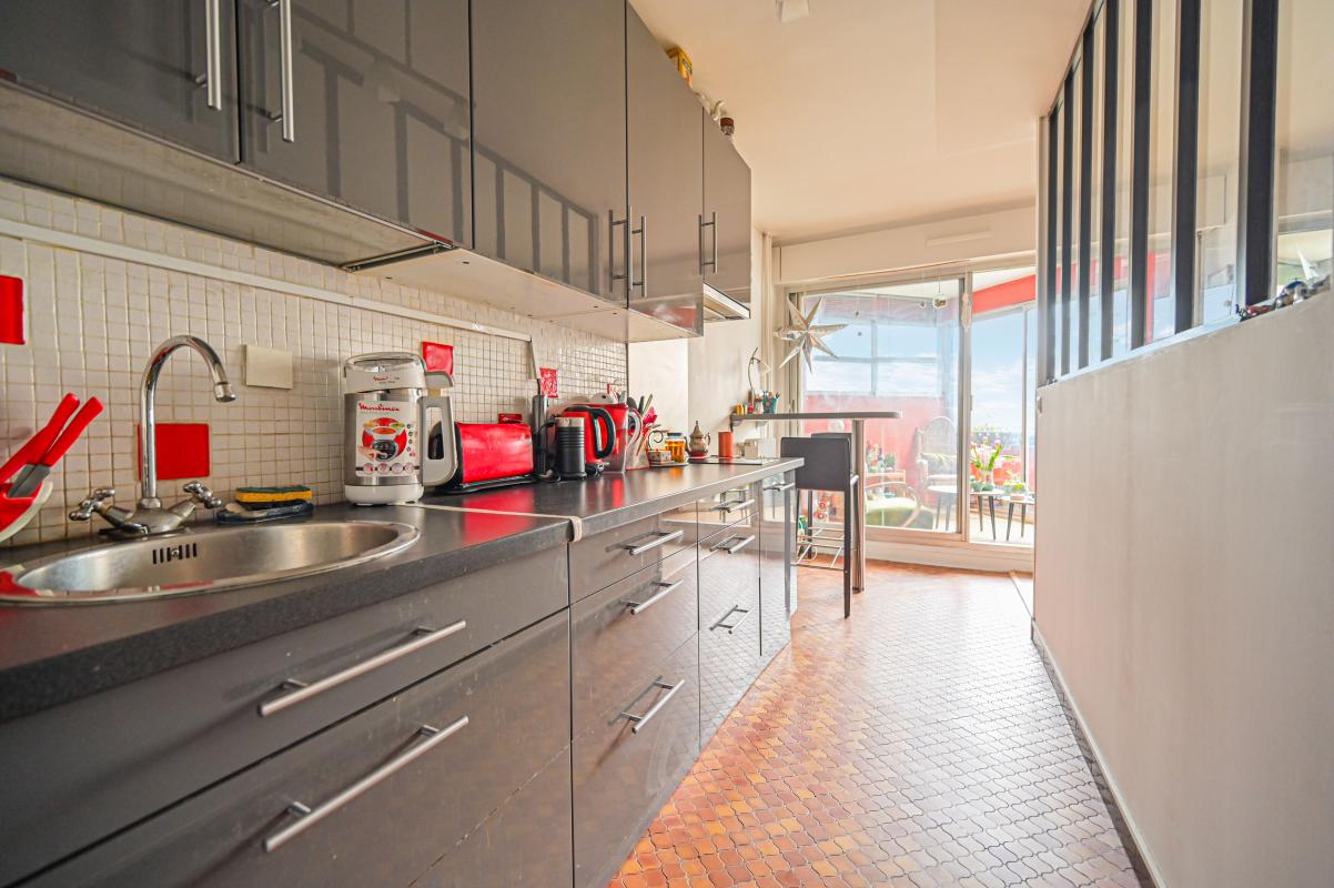 Appartement de 51.23 m2 situé au 6ème étage d'un immeuble 1970, comprenant une entrée, un séjour de 26.75m2 avec un balcon filant de 11.98 m2, une cuisine aménagée et équipée ( plaque à induction, four,four micro-ondes, réfrigérateur/congélateur, lave lin...