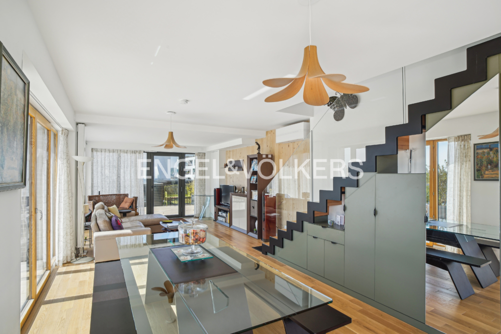 Comme une maison perchée sur le toit, ce duplex d'exception de 134,52m² Carrez avec plus de 130m² d'espaces extérieurs offre un cadre de vie rare, au 7e et dernier étage d'une résidence récente (2022) signée Wilmotte & Associés.