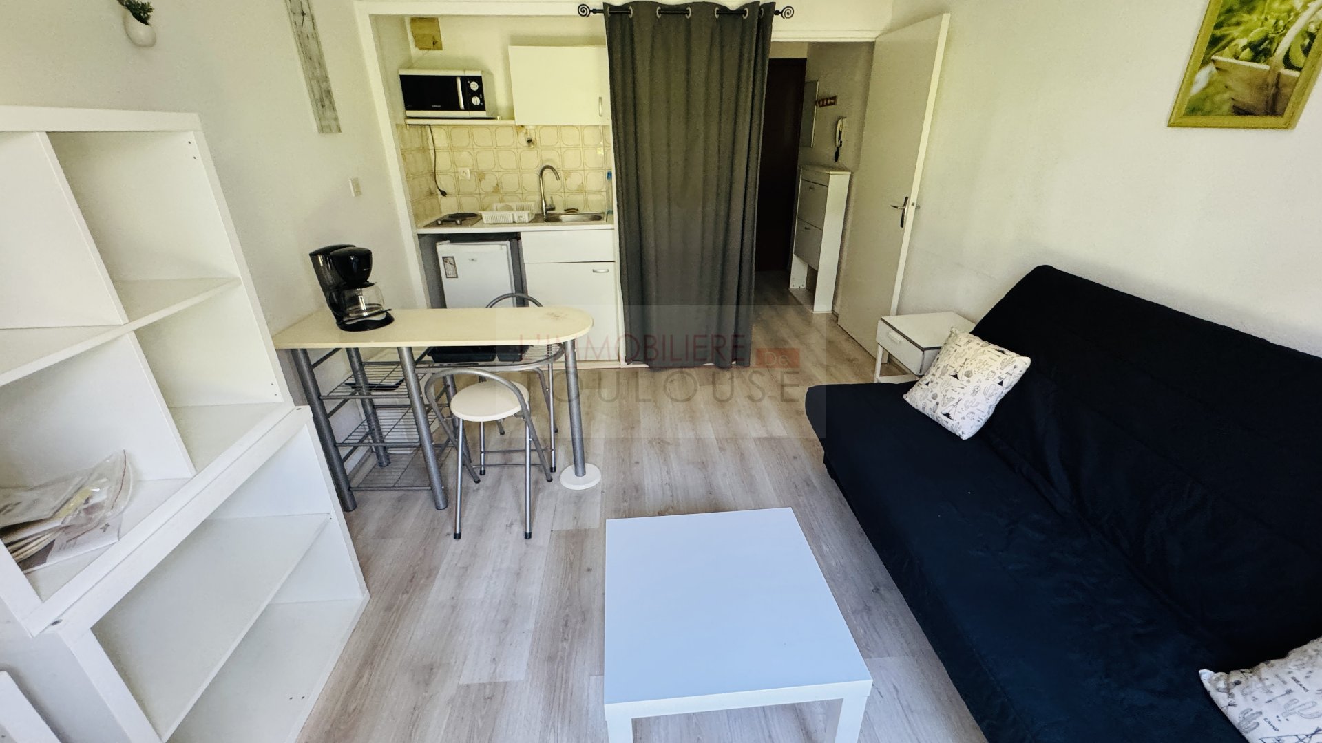 L' appartement est tres lumineux avec de grandes baies vitrées, il comprend un séjour avec kitchenette ,1chambre sépa...