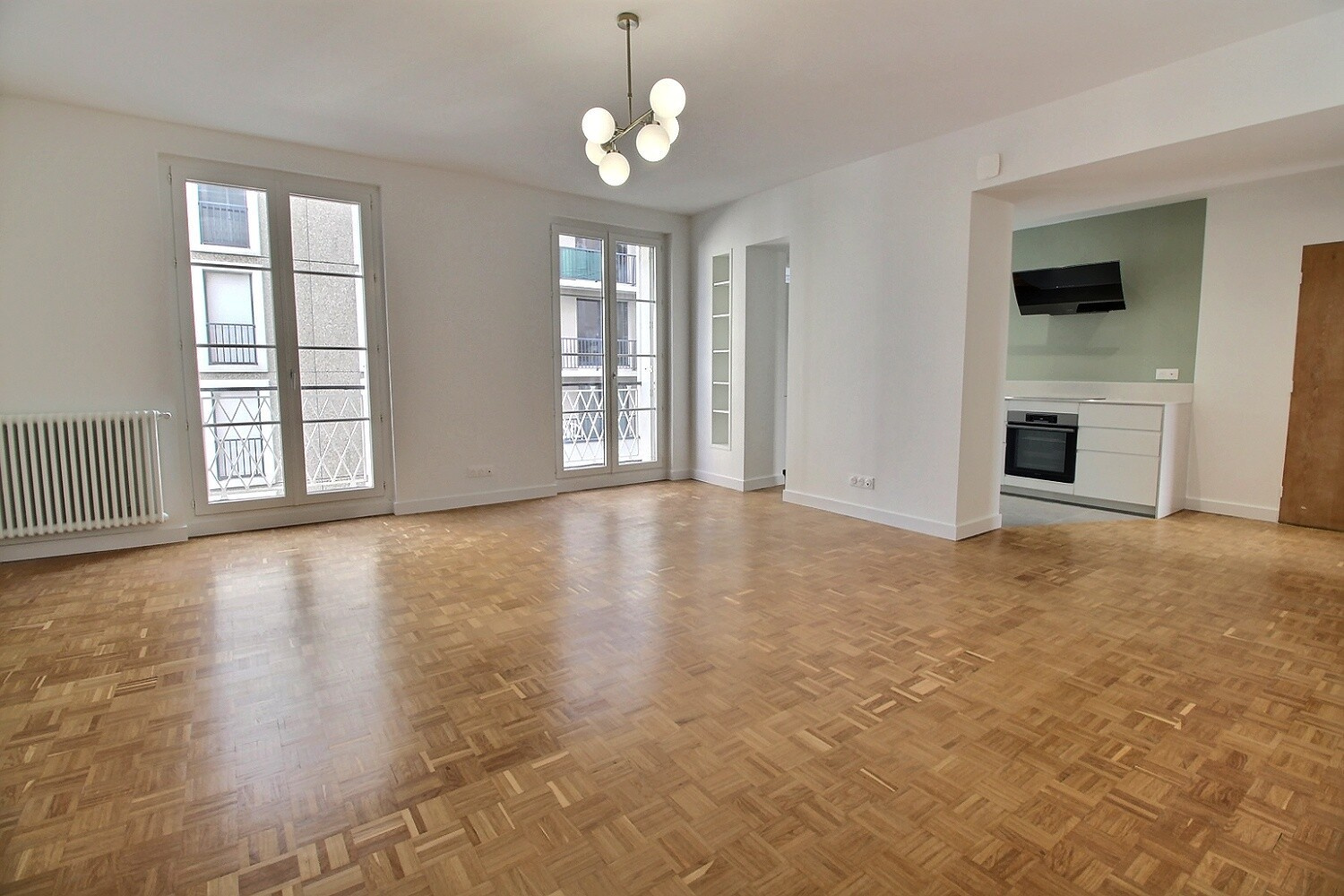Beaux volumes pour cet appartement F4 mansardé de 66.20 m2 Carrez et 93.63 m2 au sol.et comprenant : entrée, dégagement, séjour-salon + cuisine USA 34 m2 Sud, 3 chambres, sa...