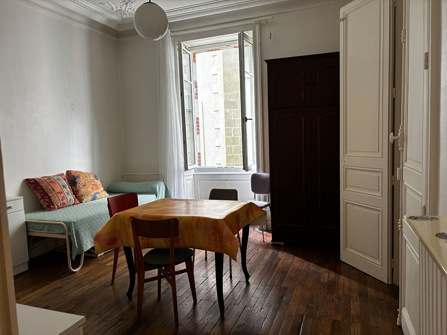 Appartement T2 de 2013 VENDU LIBRE très bien placé, au pied des commerces et des facultés, des transports... entrée avec placard, séjour sur terrasse de 7.70 m² au calme, cuisine ouverte équipée (réfrigérateur et plaque 2 feux, hotte), chambre séparée au calme...