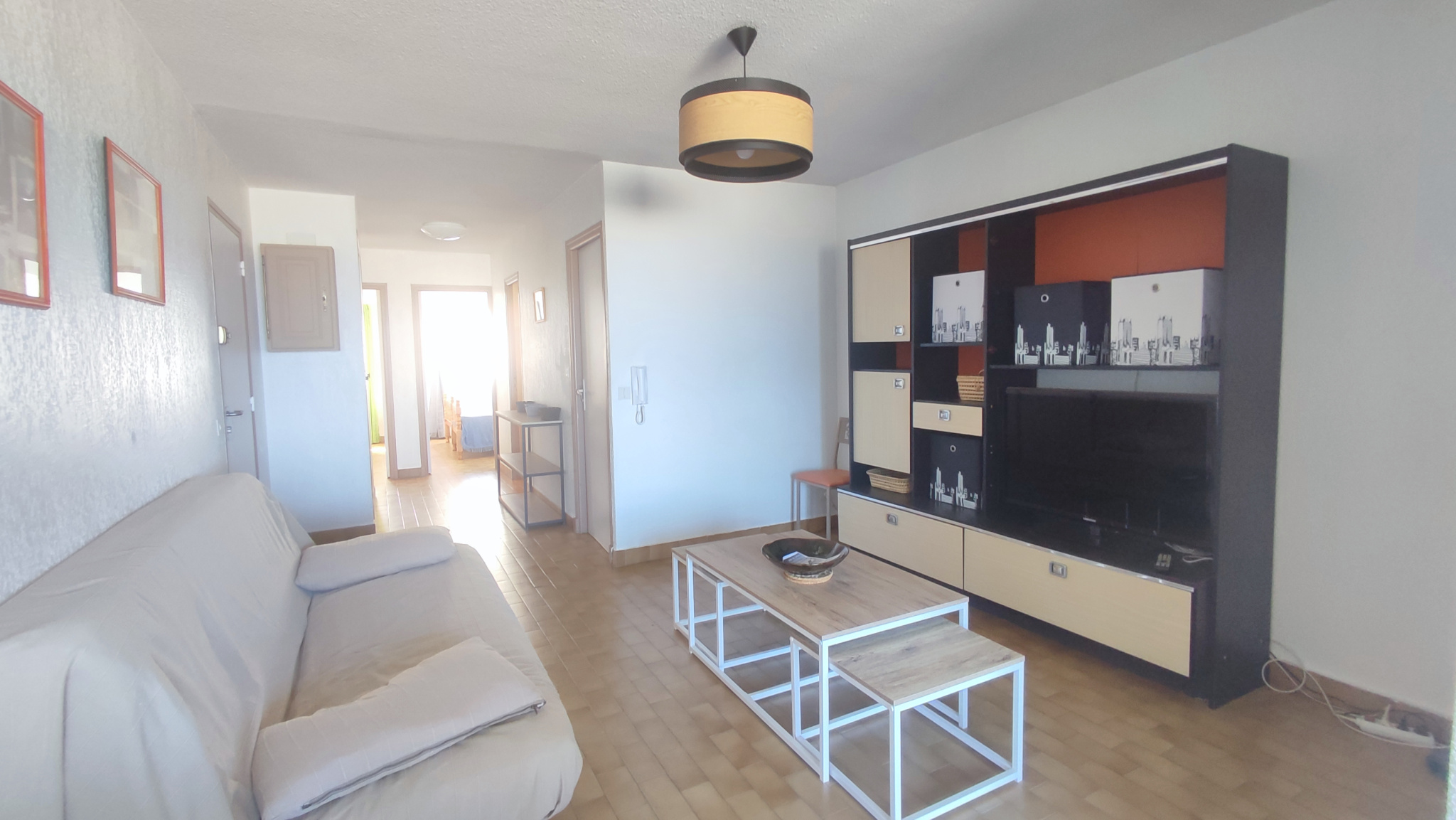Appartement traversant de 47m2 (loi carrez) + terrasse , vendu meublé ( si besoin) , en très bon état, avec une Vue imprenable sur la Mer, situé au Port à 10 minutes à pied de la place Méditerranée, au 3ème étage d'une résidence calme avec ascenseur.
