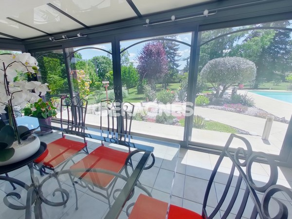 Envie d'une maison du Sud tout confort avec beaucoup de lumière, une vue bucolique, une superbe piscine et jardin clos et arboré? Laissez vous tentez par ces beaux volumes : séjour-salon-véranda- cuisine équipée et aménagée, 3 chambres, 3 wc, 3 salles d&...