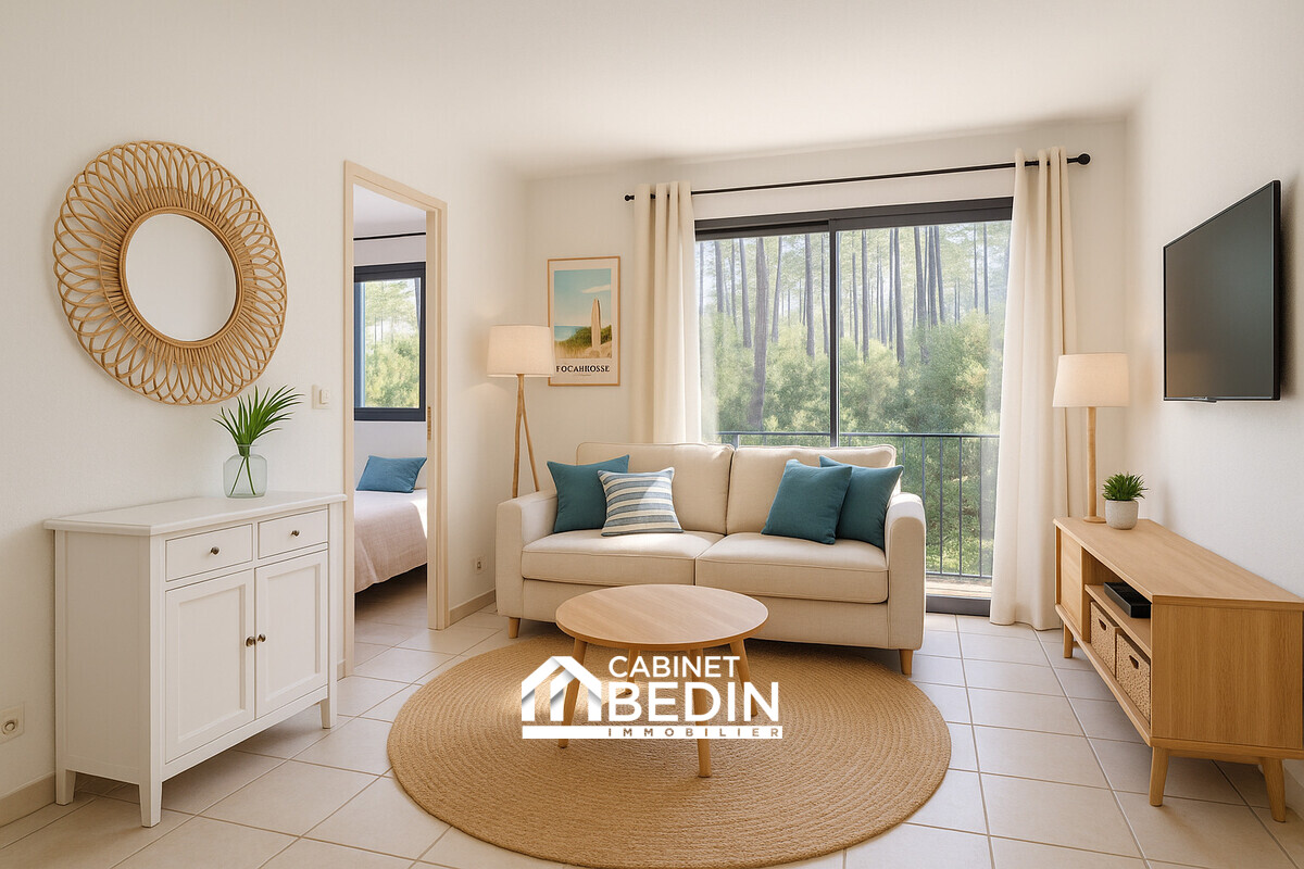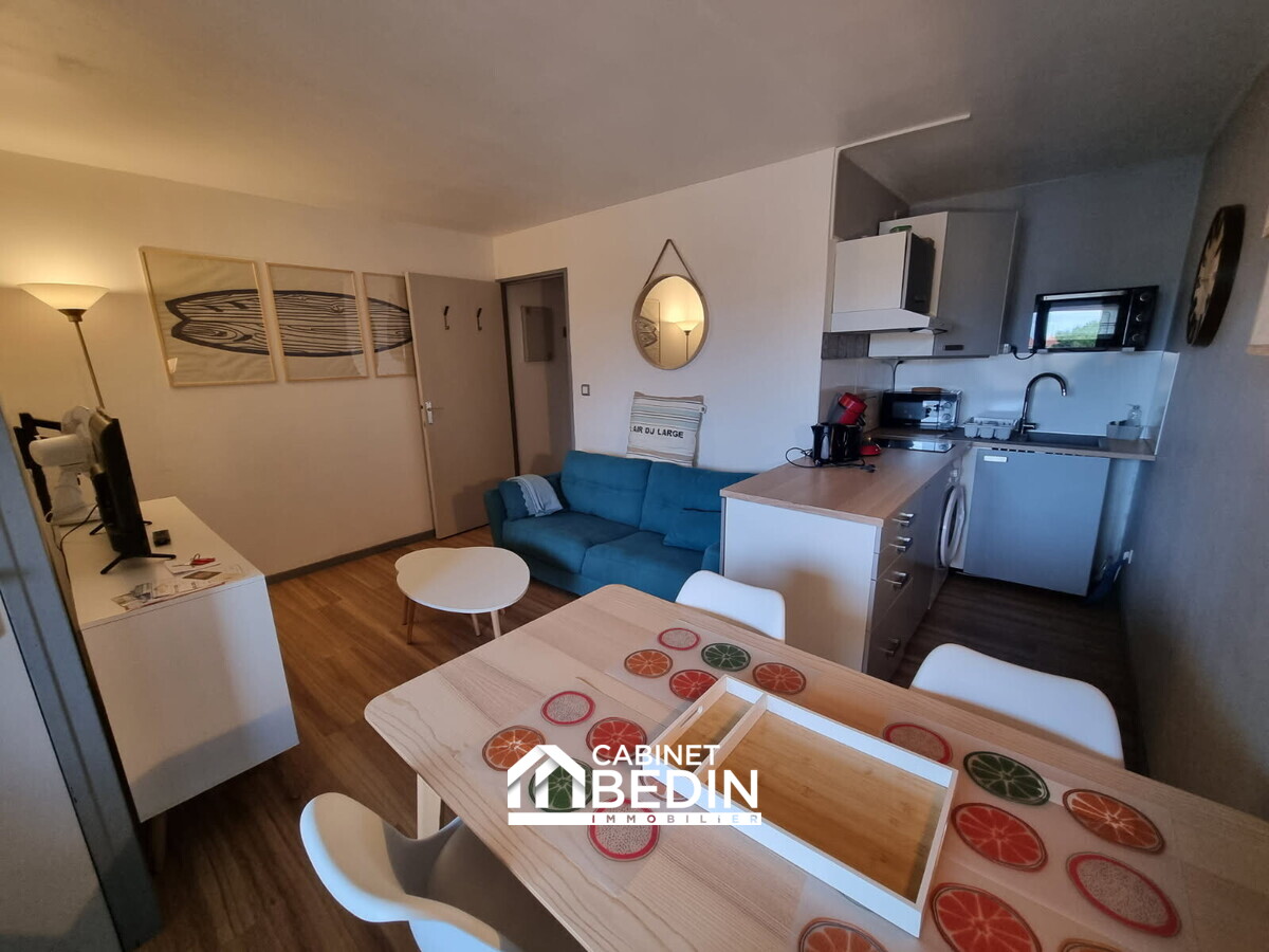 Exclusivité CABINET BEDIN - BISCARROSSE PLAGE. Idéalement situé à Biscarrosse Plage, cet appartement fonctionnel et lumineux offre un cadre de vie recherché entre océan et nature. Il se compose d?un séjour avec cuisine ouverte d?environ 17 m², d?un coin cabine...